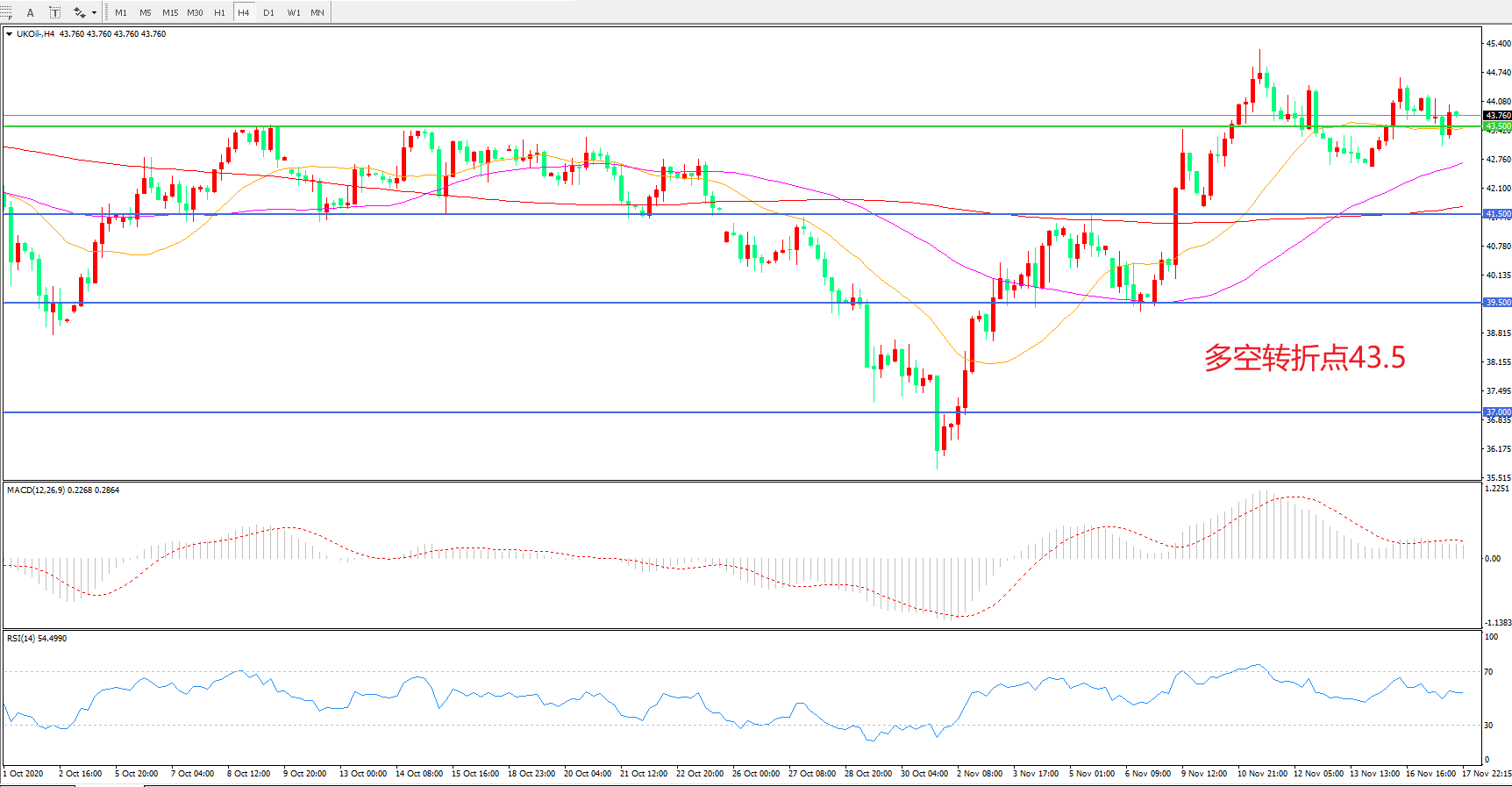 多空转折点:43.50