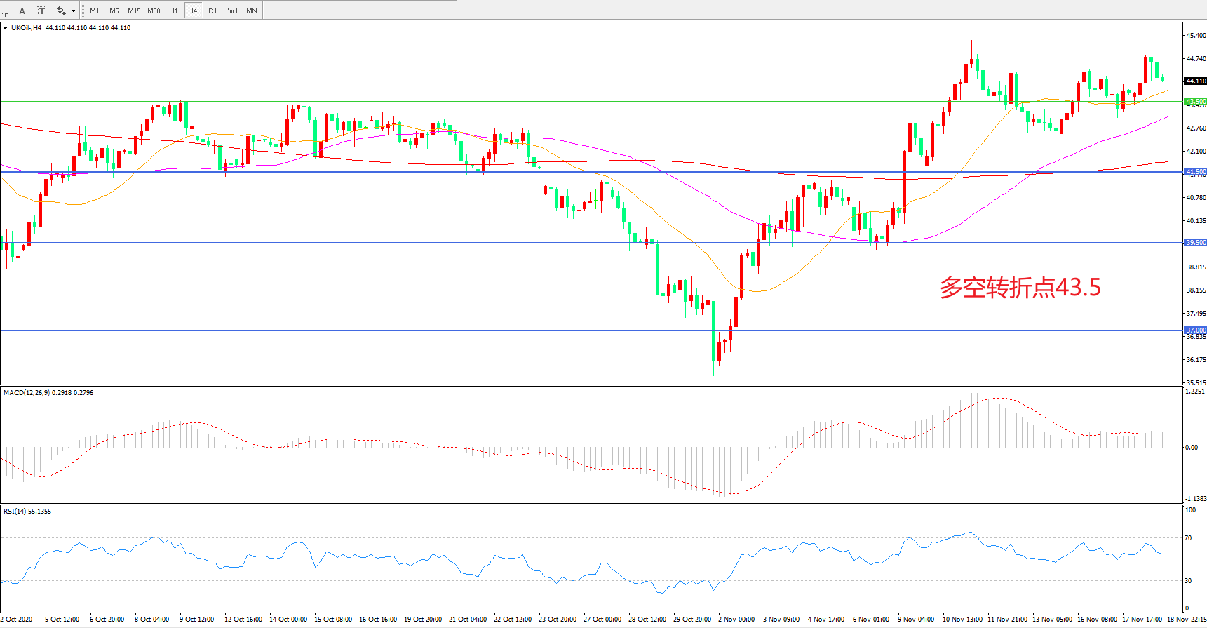 多空转折点:43.50