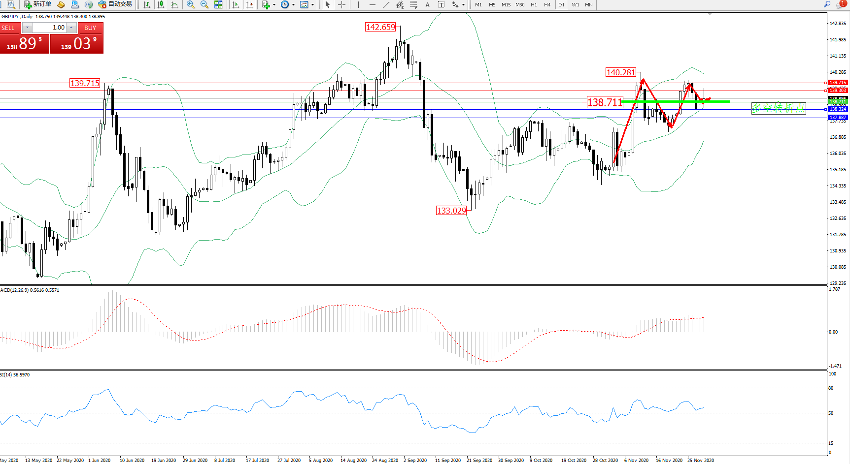 英镑兑日圆震荡回升至138.895附近,英国首相发言人:英国仍致力于尽快与欧盟达成自由贸易协定,但不会改变谈判立场。英国方面仍认为与欧盟在渔业、公平竞争方面存在分歧。英国正在对新冠肺炎的所有支持措施进行审查。国和欧盟终将达成期待已久的英退贸易协议,而现在已是英国脱欧过渡期倒计时。英国和欧盟就脱欧贸易协议达成一致的时间已经所剩无几,但如果本周取得良好进展,谈判可能会延长。英国与欧盟之间的脱欧谈判在“三大关键领域”仍存在巨大分歧;不管有没有一个从2021年1月1日开始的FTA(自由贸易协定),英国都可能面临来自疫情和脱欧双重因素的调整压力,而且英国/欧盟双边关系往后还有更多的摩擦空间。