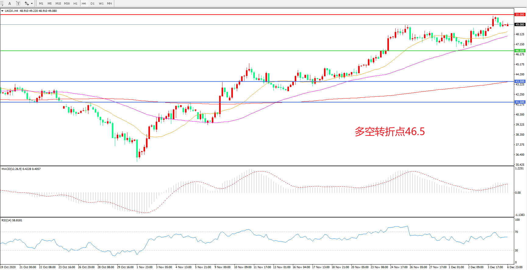 交易策略: 在46.50之上看涨,目标50.00 53.00