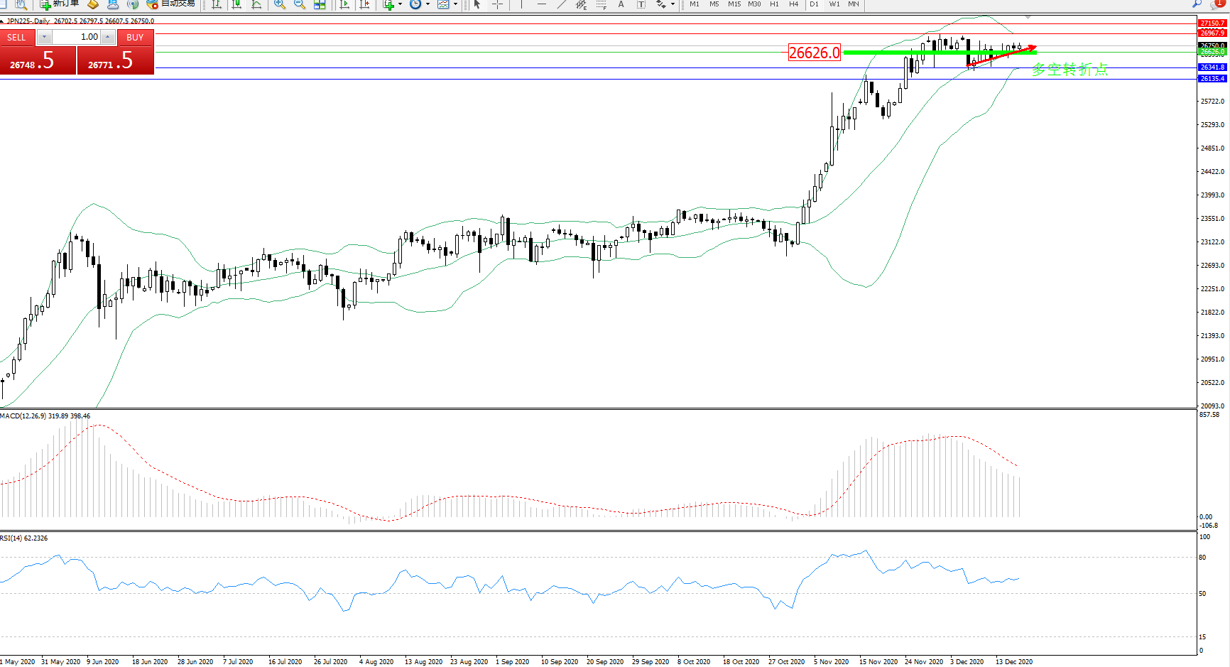 日经225指数12月17日(周四)收盘上涨65.10点,涨幅0.24%,报26822.50点。菅义伟内阁16日迎来成立三个月。菅内阁以高支持率顺利起航,但由于新冠肺炎疫情蔓延之势再次加剧,支持率趋于下降;调查结果显示,菅内阁支持率已由成立之初的74%下降至12月的61%。特别是在新冠肺炎疫情防控方面,人们开始对政府投以严厉目光;与去年参议院选举相关的大规模收买事件中,前法相河井克行及其妻参议员河井案里被起诉,来自自民党的前农相涉嫌收受鸡蛋经销商提供的现金,菅义伟亲信议员的“政治与金钱”问题带来严重影响。前首相安倍“赏樱会”前晚宴问题也在发酵;日本内阁官房长官加藤胜信:需要对新冠疫情提高警惕。东京政府的举措是基于新冠的感染情况。就当地限制出游的要求寻求合作。将根据当地的疫情状况决定是否恢复“Go To Travel”计划。