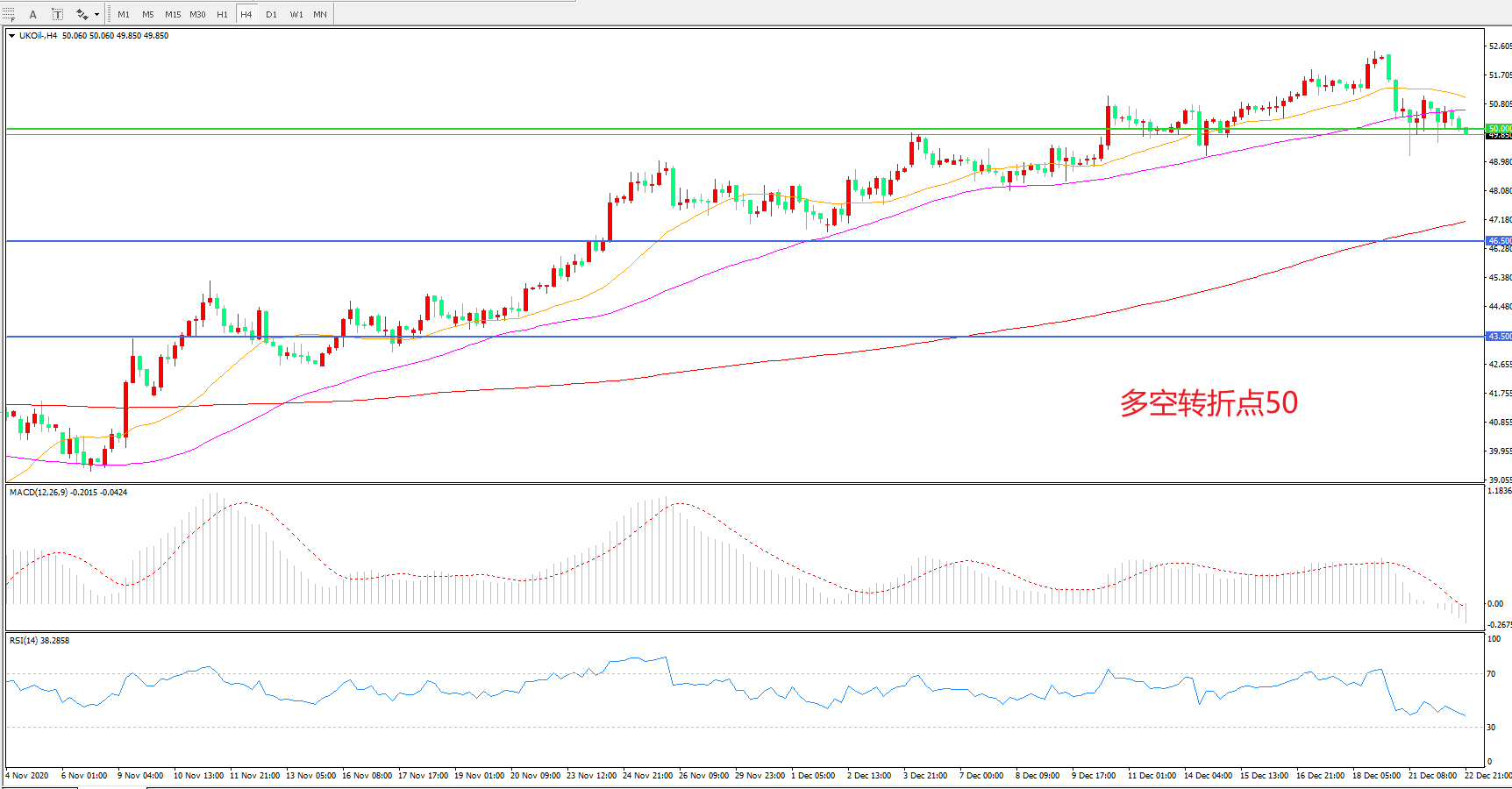 交易策略:  在50.00之下看跌,目标46.50      43.50