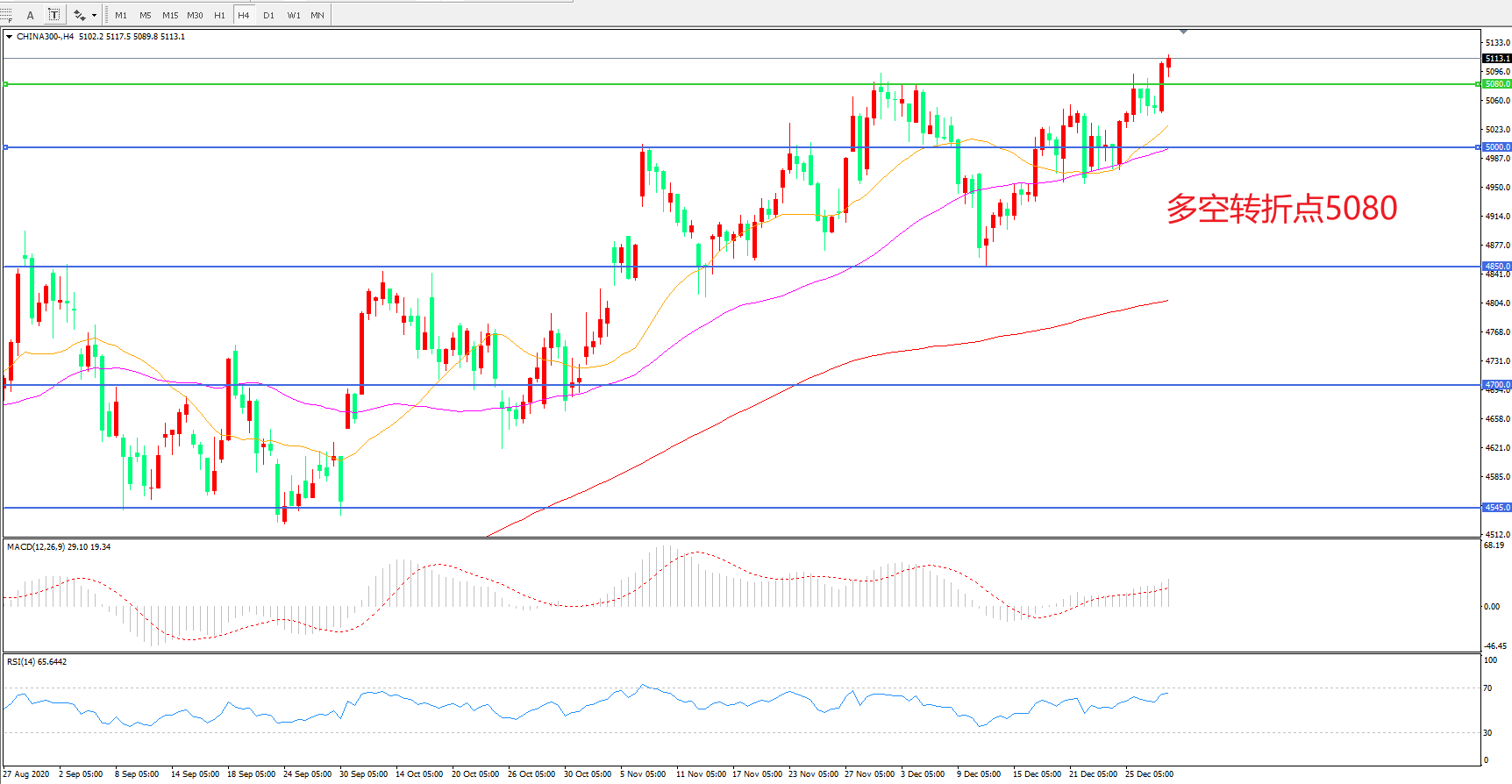 交易策略: 在5080.00之上看涨,目标5150.00       5250.00