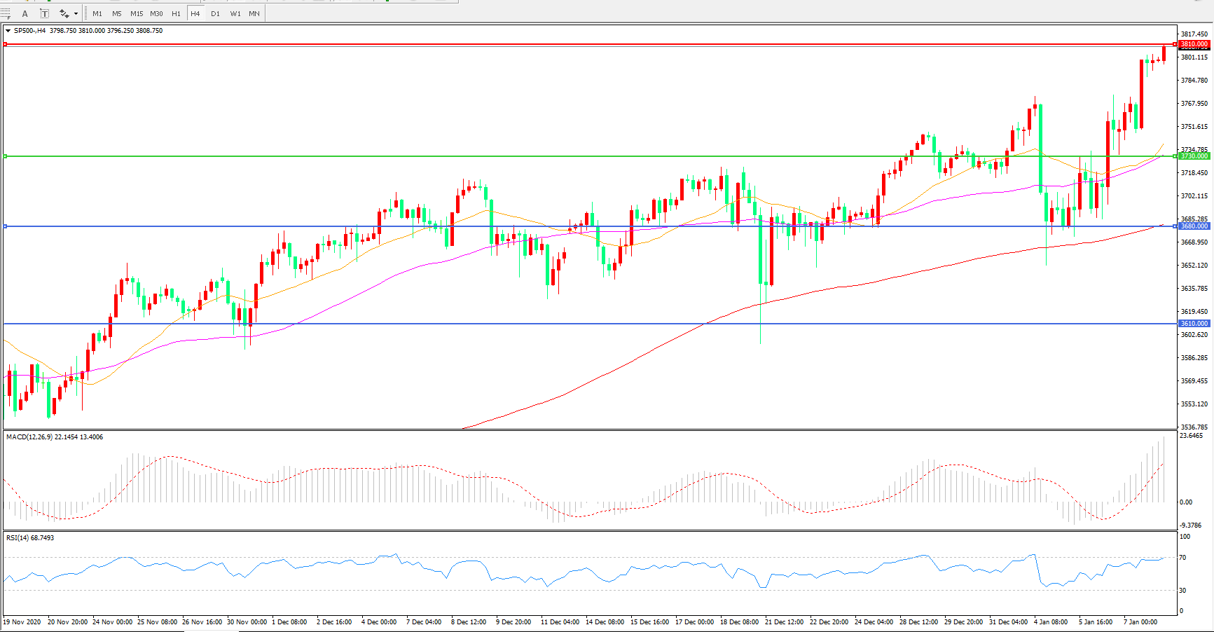 周四(1月7日),美国国会确认,拜登获得当选总统所需的270张选举人票,当选美国第46任总统,特朗普发表声明称,尽管完全不同意选举结果,但1月20日将会“有序”过渡。市场风险情绪回暖,美股齐创新高,标普500大幅上行,收报3800.25点。民主党即将掌控美国联邦政府和国会两院,令投资者押注更多财政刺激措施出炉。