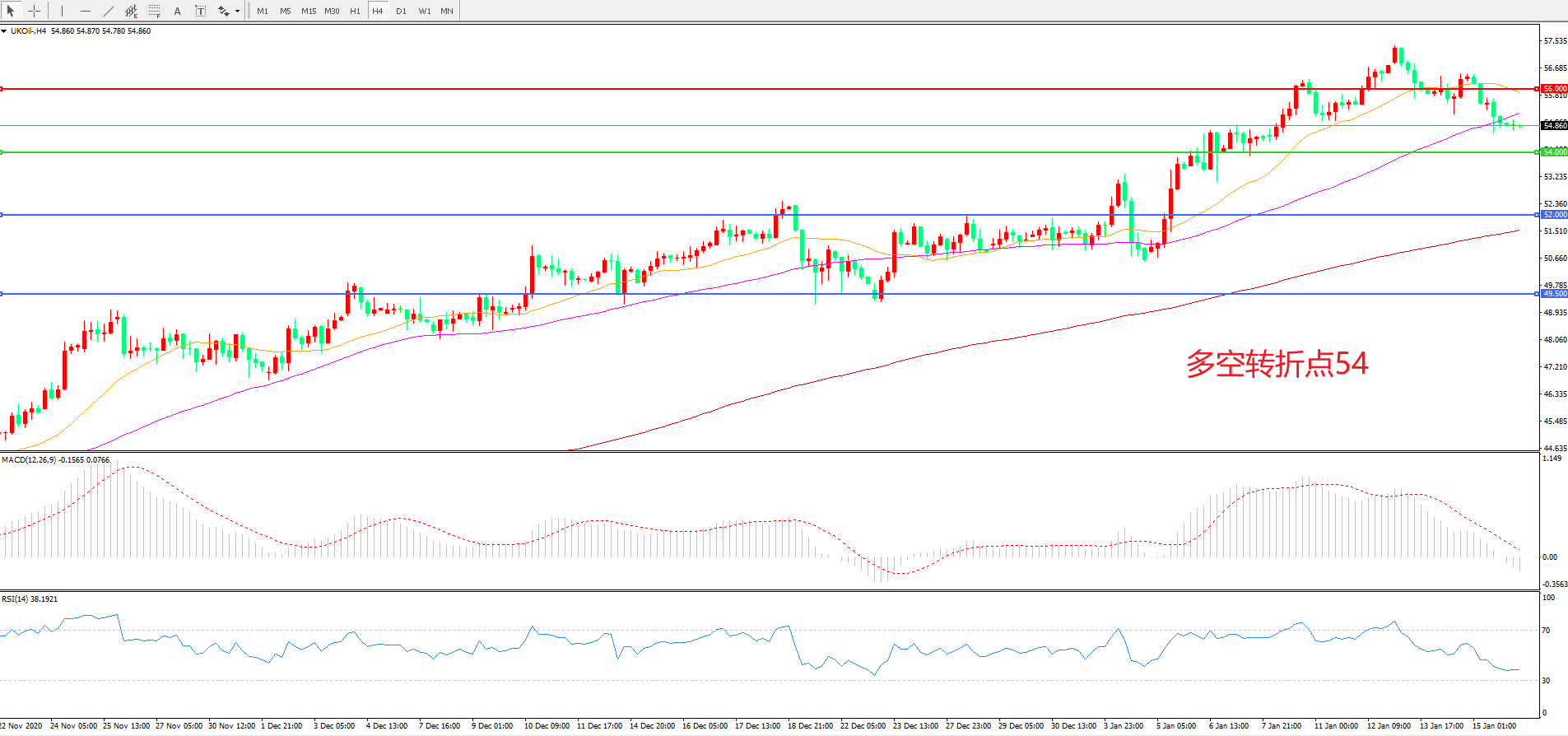 交易策略: 在54.00之上看涨,目标56.00 60.00
