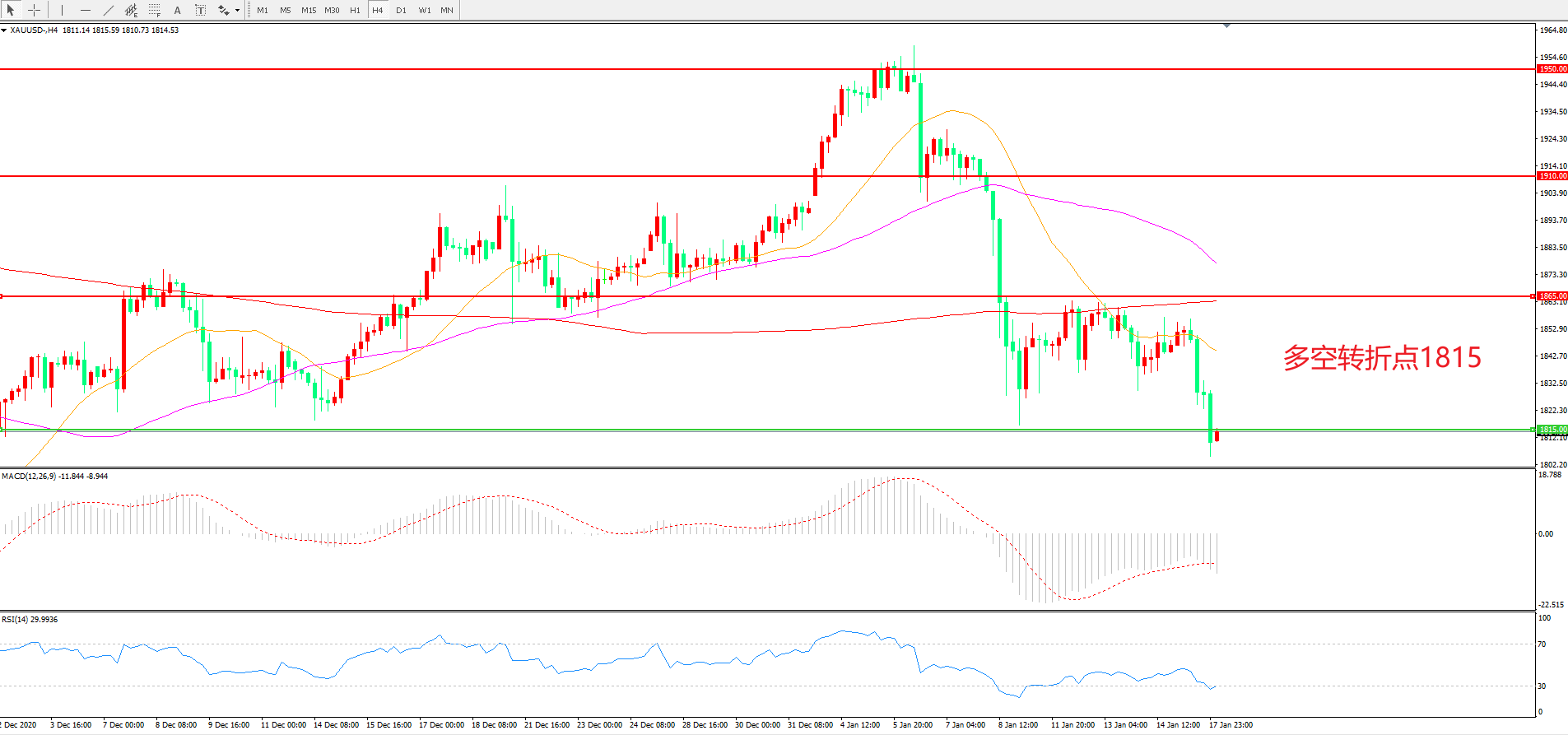 交易策略:在1815.00之下看跌,目标1765.00 1710.00