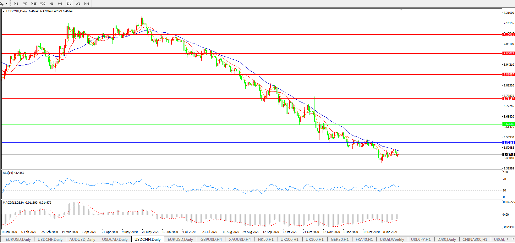 美元兑人民币USDCNH    日线图: