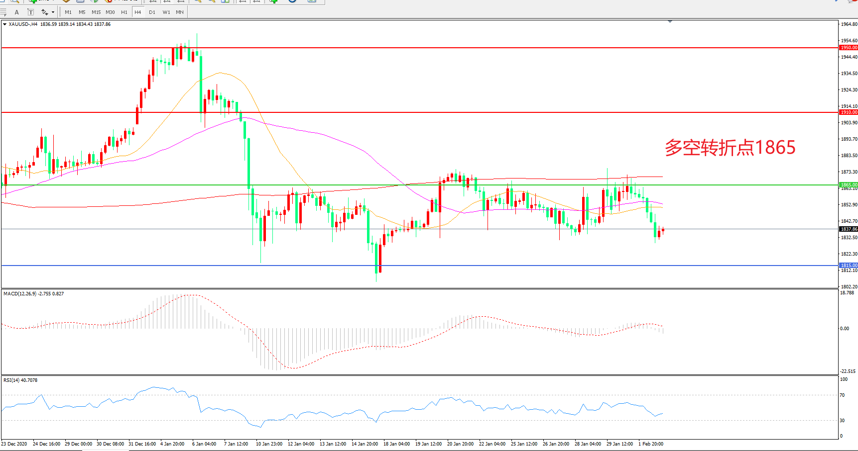 交易策略:在1865.00之下看跌,目标1815.00 1765.00