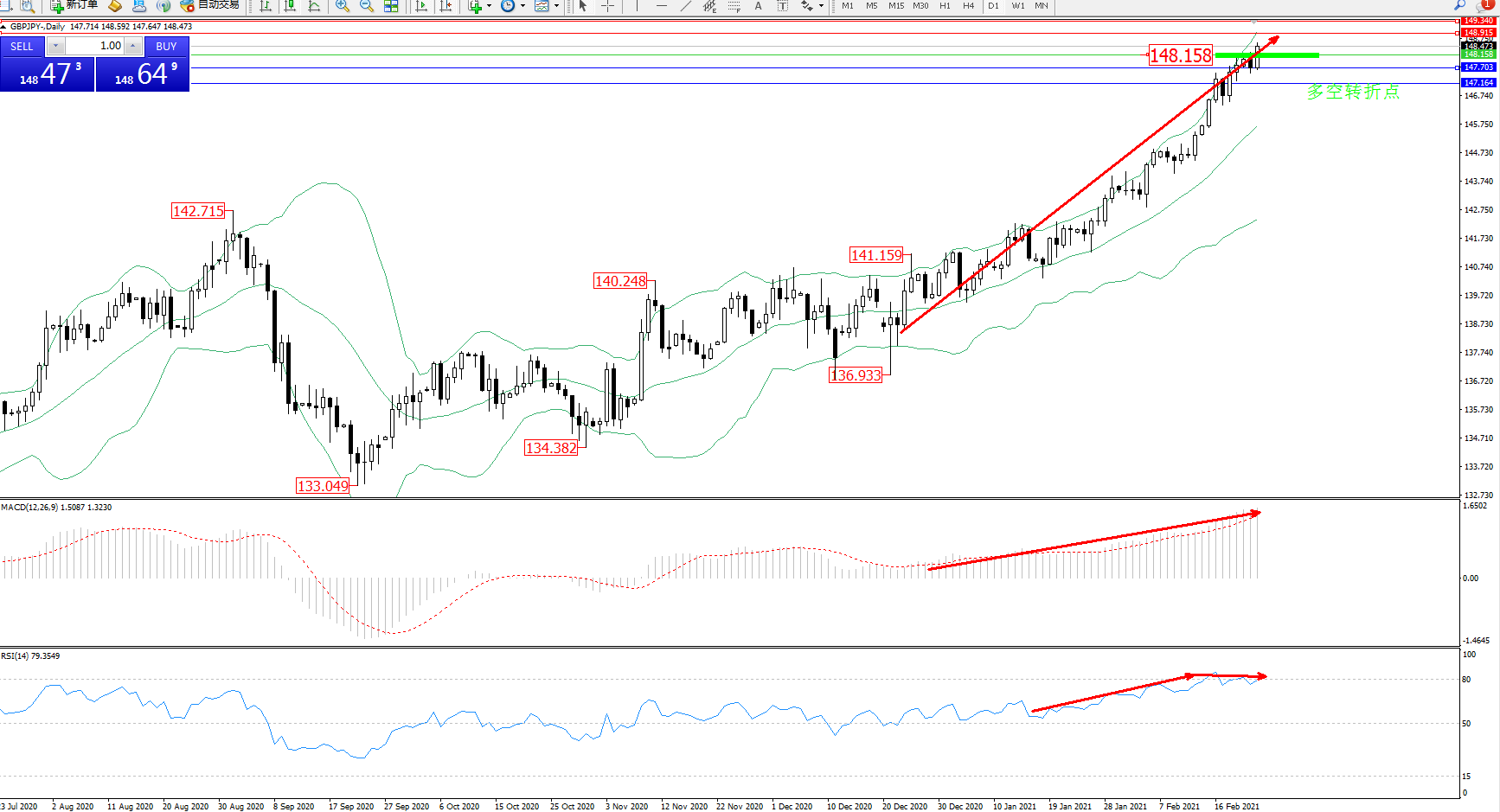 英镑兑日圆高位不断拉升至148.473附近整理,在英国首相约翰逊22日提出4阶段解封计划后,夏季假日旅游预订量激增600%,这让遭受疫情重创的航空公司和旅游运营商重新燃起了希望。约翰逊表示英国的国内旅游最早可能从4月12日恢复,海外旅行可能从5月17日恢复。政府打算重新开放旅游的讯号正是英国消费者一直等待的。约翰逊政府希望大部分经济部门能够在6月底之前开放。没有一条可靠的途径是英国或世界达到零疫情,但我们不能无限期地坚持限制,这些限制削弱了我们的经济、我们的身心健康,以及我们孩子的生活机会。这些措施虽然受到大多数人的欢迎,但将被认为是缓慢的,在某些情况下还会引发争议,因此约翰逊在议会投票前可能会遇到他手下保守派议员的阻力。