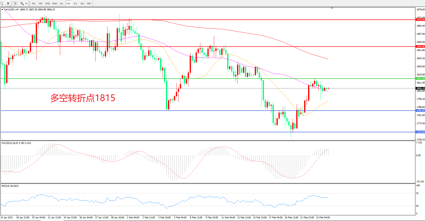 备选策略:在1815.00之上看涨,目标1845.00    1870.00
