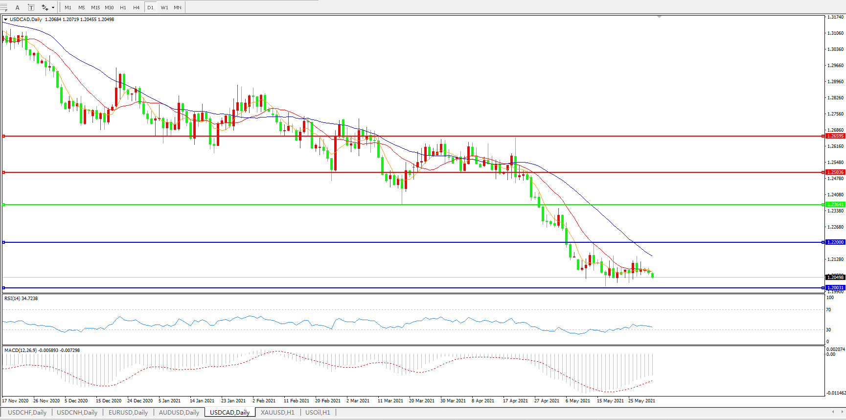 技术面简析:日线图均线呈有序空头排列,汇价持续下行,MACD运行于0轴下方但量能开始缩量,RSI有走升迹象,预计短期汇价大概率将低位整理。