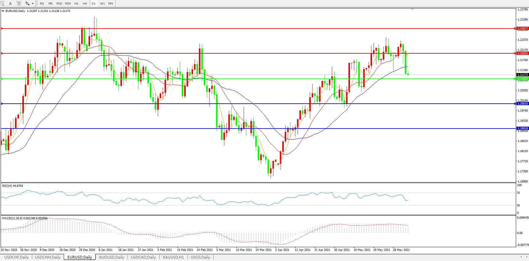 欧元兑美元EURUSD   日线图: