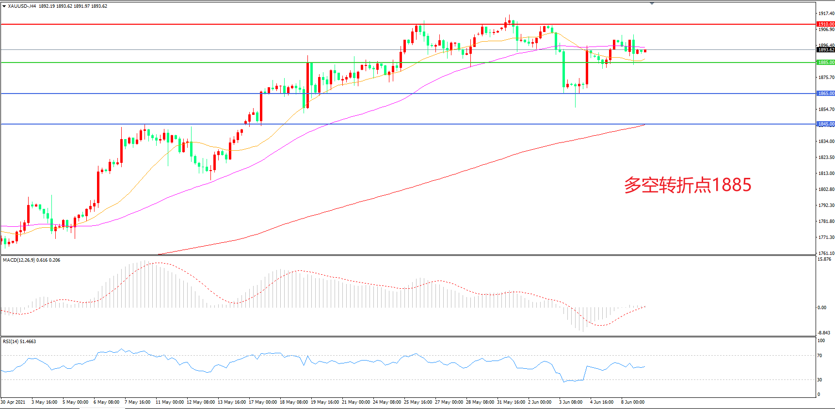 周二(6月8日),美国将于周四发布CPI数据,这是美联储政策会议召开前出炉的主要经济指标,美元指数小幅上涨,交投于90大关上方,现货黄金小幅下跌,收报1893.10美元/盎司。上周的非农数据令美元承压,投资者希望从周四的消费者物价指数(CPI)数据中寻找新的方向。
