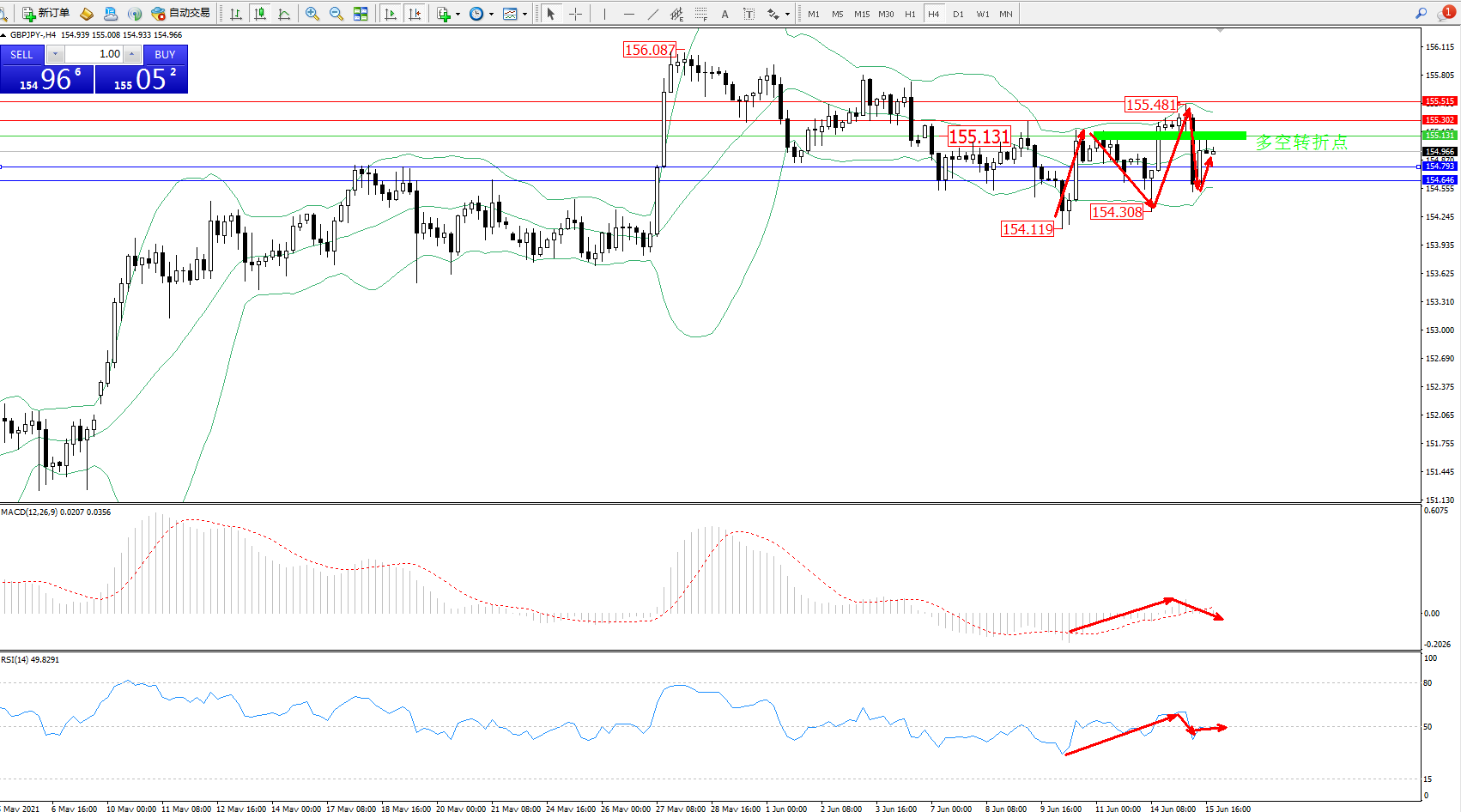 技术点评:多头动力延续布林带指标通道内持续宽幅震荡向上移动走势中,期间多次来回试探上下轨区间节点,高位抵达155.481位置后再度下挫,但依旧维持在通道内整理,布林带指标呈缓慢张口走势后开始收口,MACD指标低位多头动力维持在0轴线附近弱势整理,RSI指标处于50均衡线附近持续震荡;