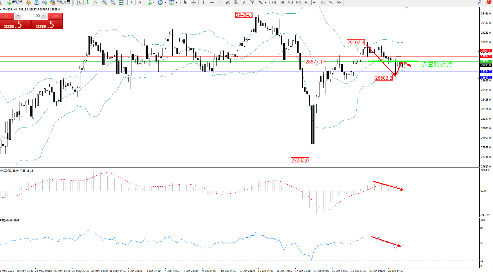 日经225指数6月29日(周二)收盘下跌234.52点,跌幅0.81%,报28813.50点。日本经济再生大臣西村康稔:全国新冠感染病例呈下降趋势。由于疫情紧急状态的影响,5月被迫休假的员工人数有所上升。受疫情影响就业市场疲软,这值得关注。希望在年底前签署全球企业税收协议。市场消息:日本央行7月份将下调三种期限的日本国债购买频率。