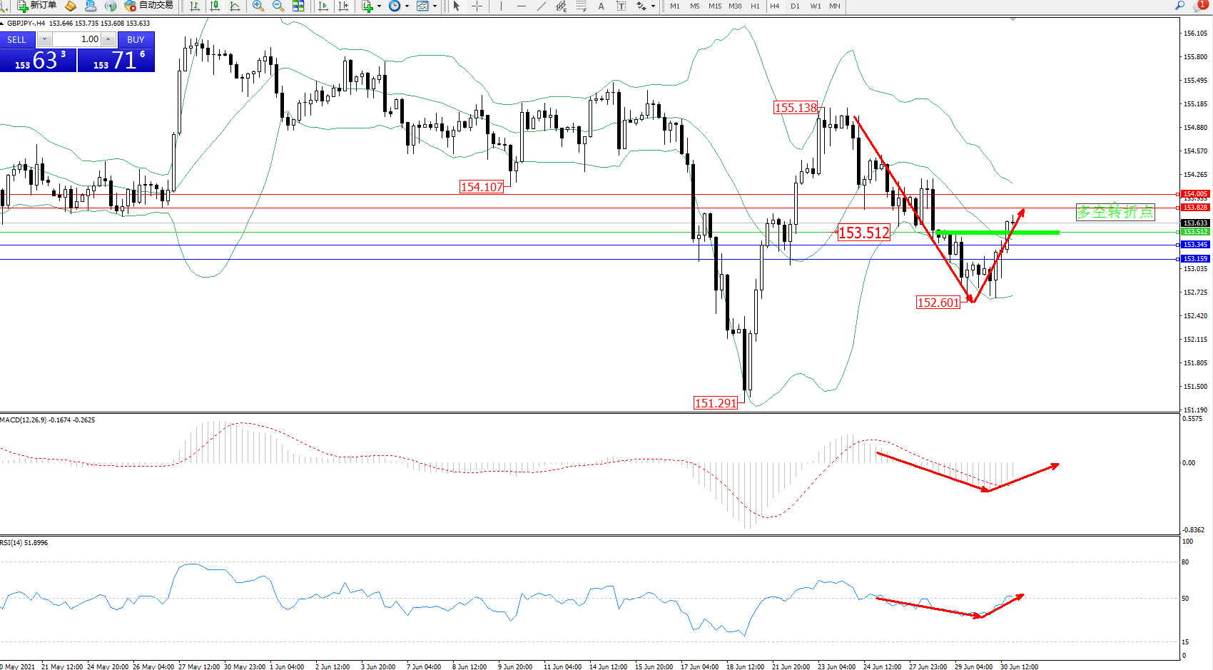 技术点评:空头动力延续布林带指标通道中下轨区间持续震荡下行,低位抵达152.601位置后得到支撑,短期整理后反转上扬,突破布林带指标中轨附近节点后有继续拉升态势,布林带指标呈下行趋势走势良好,开始有收口迹象,MACD指标处于空头区域低位维持整理后开始缓慢上移中,RSI指标处于50均衡线下方空头区域维持震荡缓慢回升至50均衡线附近徘徊中;