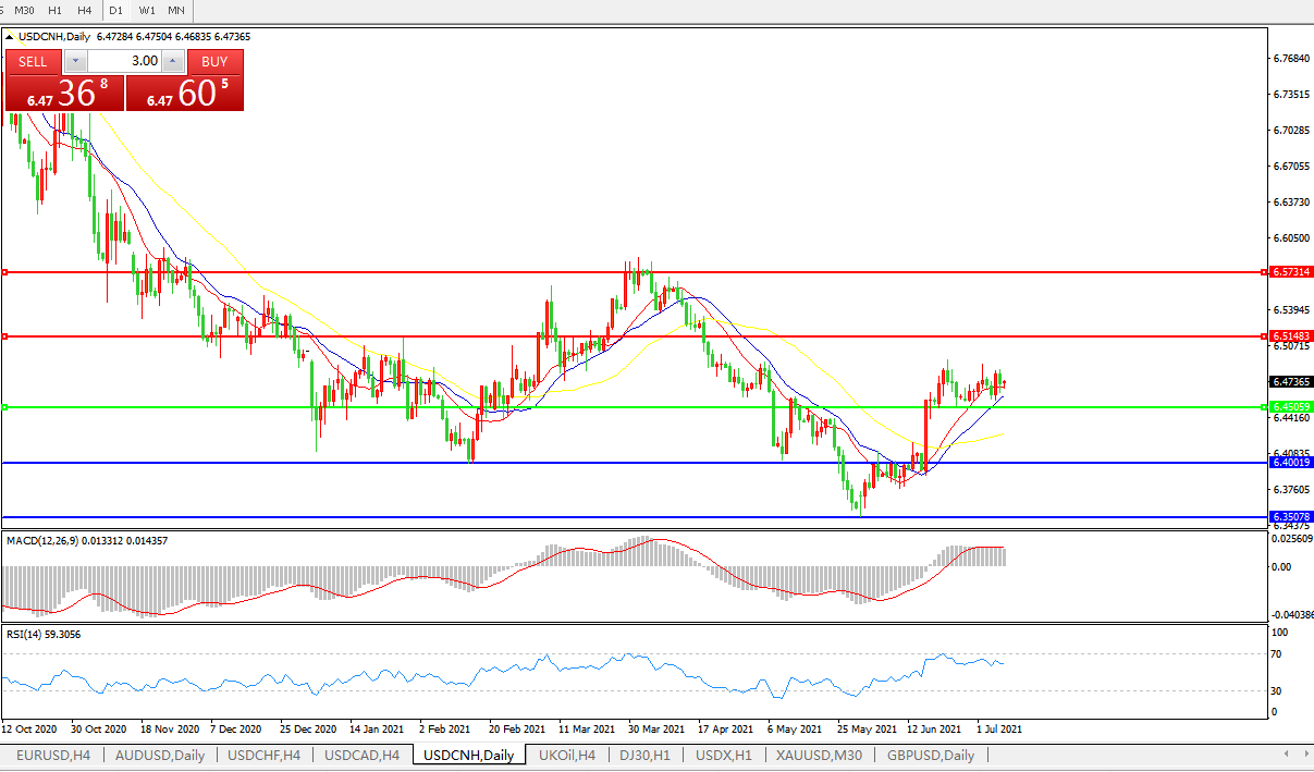 交易策略: 在6.4505之上,看涨,目标价位为6.5150,然后为6.5730。备选策略: 在6.4505之下,看跌,目标价位为6.4000,然后为6.3505。