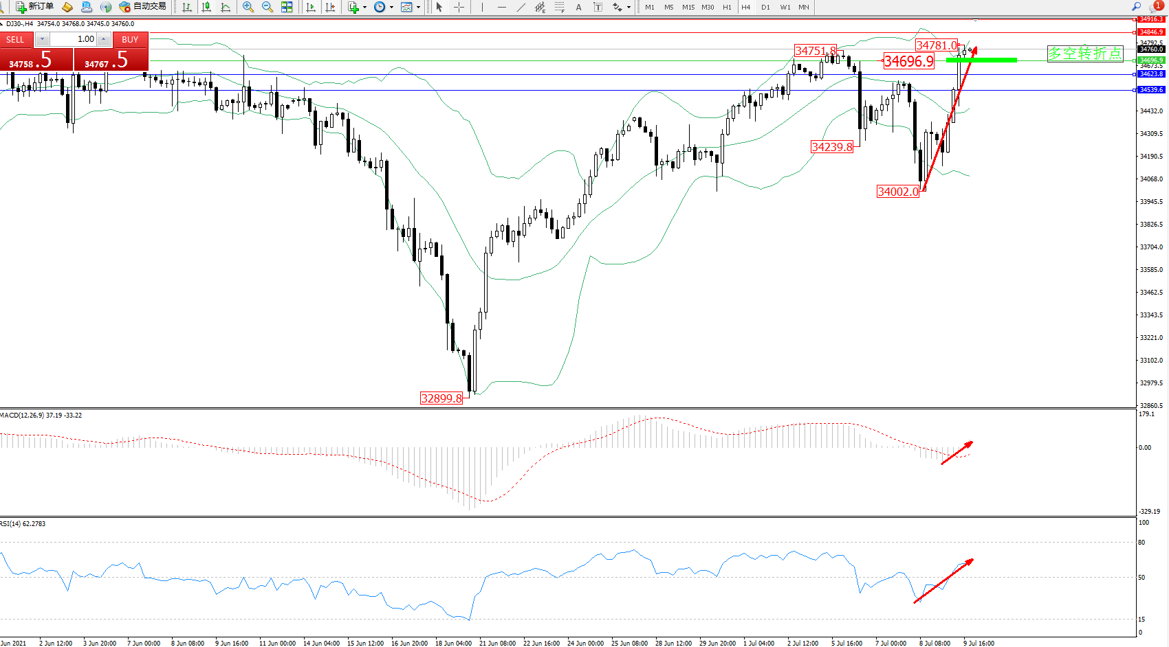 道琼斯指数7月9日(周五)收盘上涨447.11点,涨幅1.30%,报34869.04点;美国股市周五普涨,几大基准指数再创纪录新高,投资者重拾对全球经济增长的信心。市场对高传染性的新冠变异毒株仍存担忧。市场仍处于上行通道,显然一路上会有颠簸。包括摩根大通资产管理、贝莱德和摩根士丹利财富管理公司在内的多家机构预计全球经济增长仍处于正轨,下周开始的收益发布季有望进一步提振市场信心。美联储在半年度货币政策报告中承诺保持“强有力”货币政策支持,直到经济完全复苏。中国央行周五全面下调存准率,欧洲央行周四暗示将容忍通胀超调,意味着宽松政策可能持续更长时间