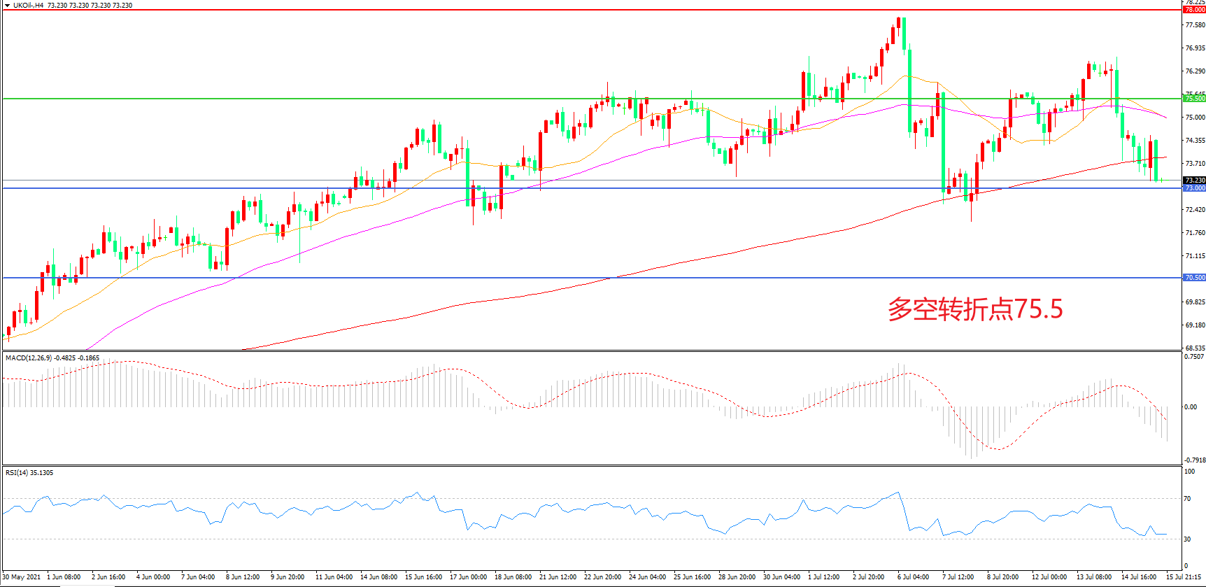 支撑位:73.00 70.50