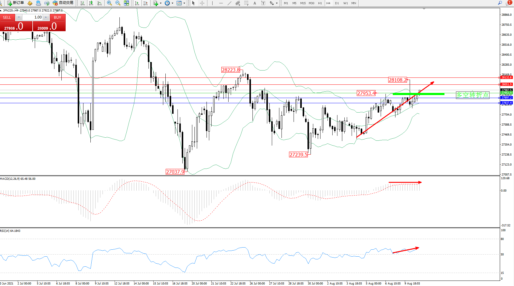 日经225指数8月10日(周二)收盘上涨47.96点,涨幅0.17%,报27868.00点。日本经济再生担当相西村康稔9日与发布新冠紧急事态宣言的首都圈和大阪、冲绳共6个都府县知事等在线交换意见,示意也可以根据知事的判断采取要求大型商业设施停业或限制入场等严厉措施。日本财务大臣麻生太郎:目前没有在准备的新刺激计划或追加预算。用于应对新冠肺炎的大量资金仍未使用。将根据需要运用未使用的新冠资金。