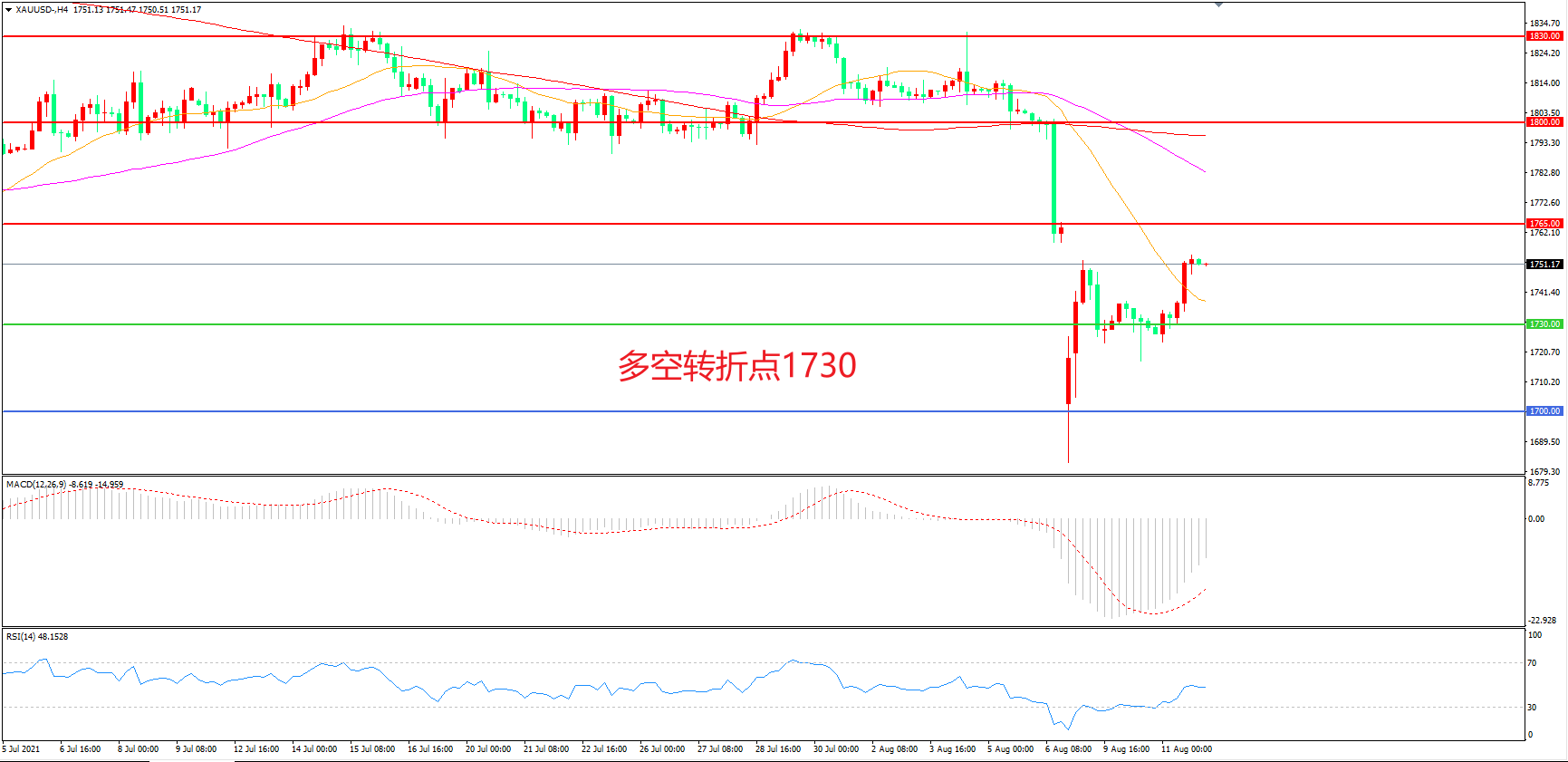交易策略:  在1730.00之上看涨,目标1765.00       1800.00