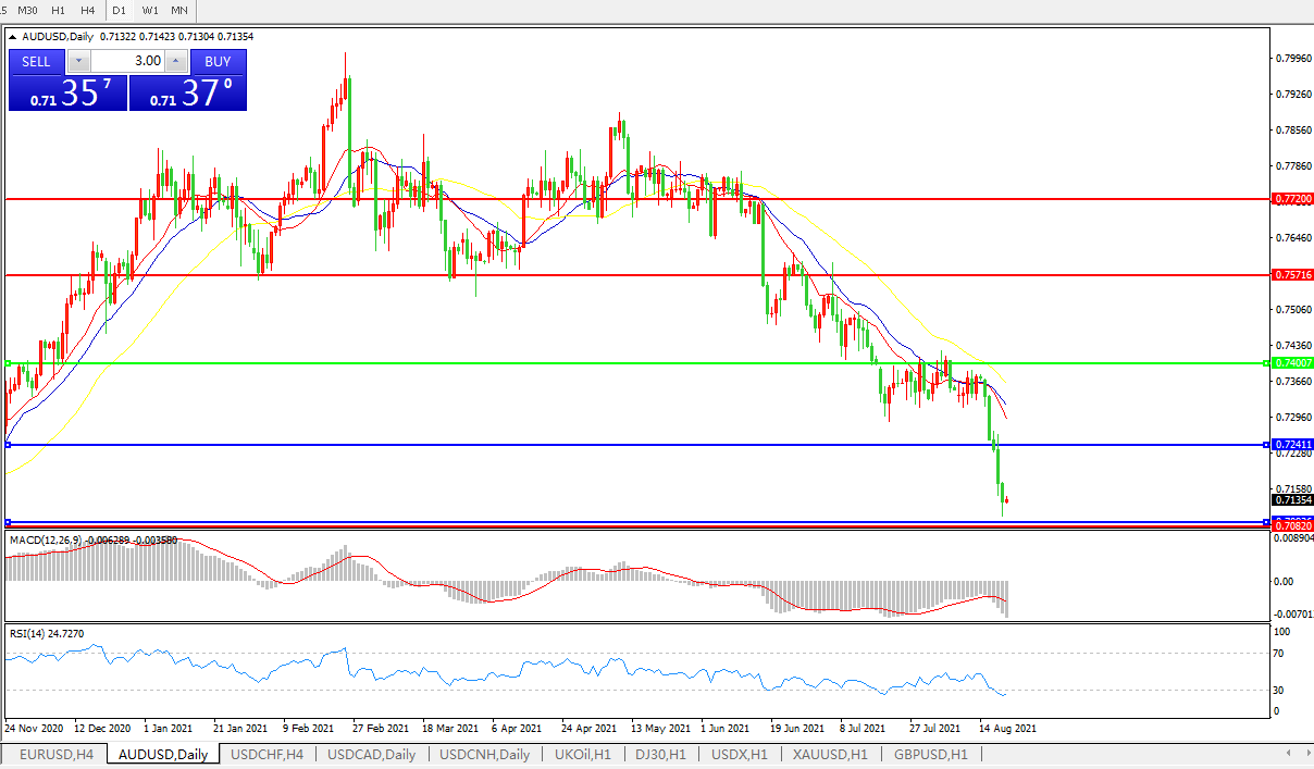 澳元兑美元盘中创下0.7107美元的九个半月新低,盘尾下跌0.14%,报0.7137。本周,澳元下跌3.16%,为2020年9月以来的最差单周表现。此前悉尼宣布将防疫封锁措施延长一个月。