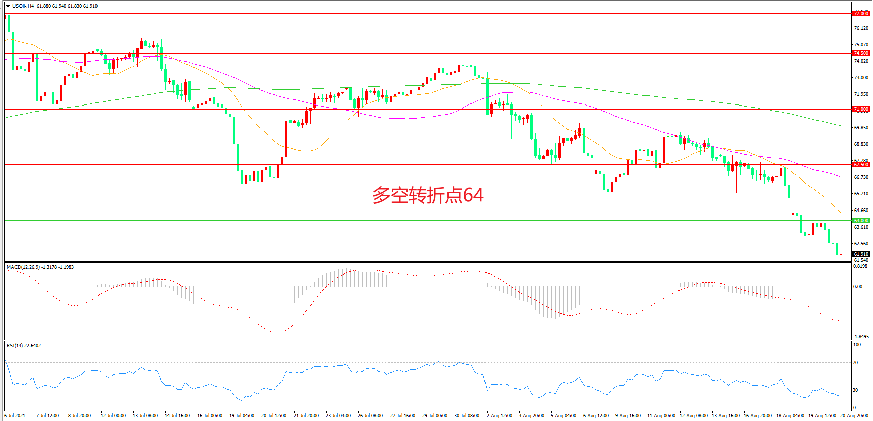 交易策略:在64.00之下看跌,目标60.00                57.00