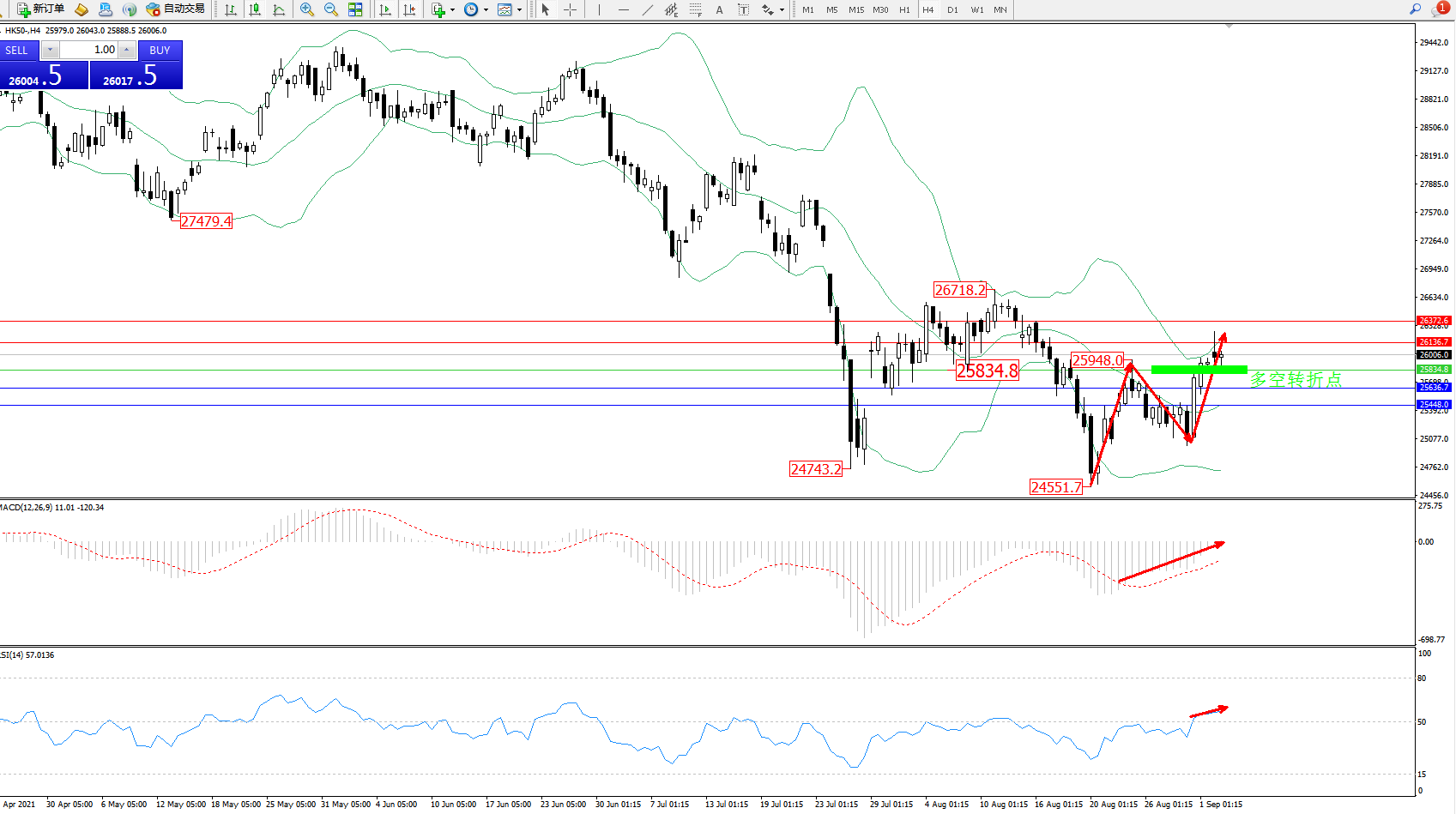 香港恒生指数9月2日(周四)收盘上涨62.14点,涨幅0.24%,报26090.43点;港股三大指数全线收涨,恒生科技指数涨1.61%报6801点。大型科技股、电力股全天强势,阿里巴巴涨3.51%带动恒指涨超80点。光伏股大涨,新特能源涨超21%,资券商股、濠赌股延续昨日涨势;基建股午后涨幅进一步扩大,中国中铁涨约8%。教育股、水务股、钢铁股、铝业股、煤炭股涨幅居前。今日大市成交额为1710亿港元,南下资金逆势净流入14.5亿港元。国家能源集团董事长王祥喜表示,希望双方以本次战略合作为新的起点,充分发挥各自优势,全面加强对接交流,在海上风电、可降解塑料、高端化工品、海外投资等方面不断拓宽合作领域,联合开展关键核心技术研发与示范,共同打造能源央企合作新典范。