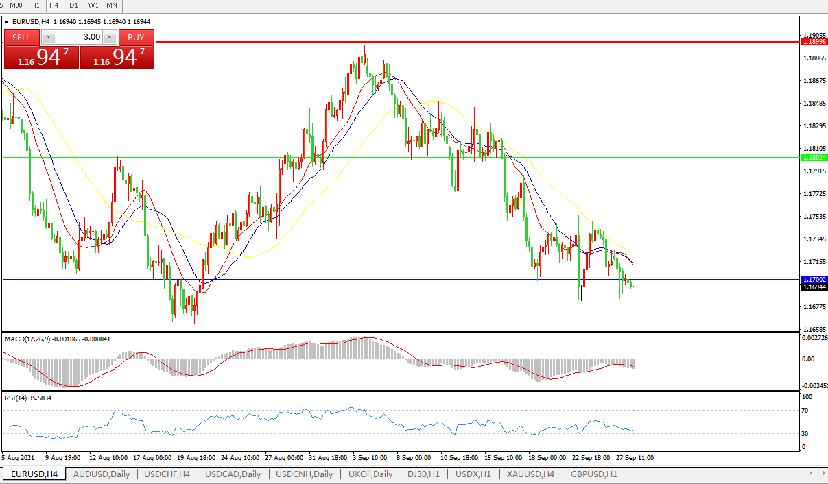 交易策略:1.1800下方看跌,目标1.1700、1.1600