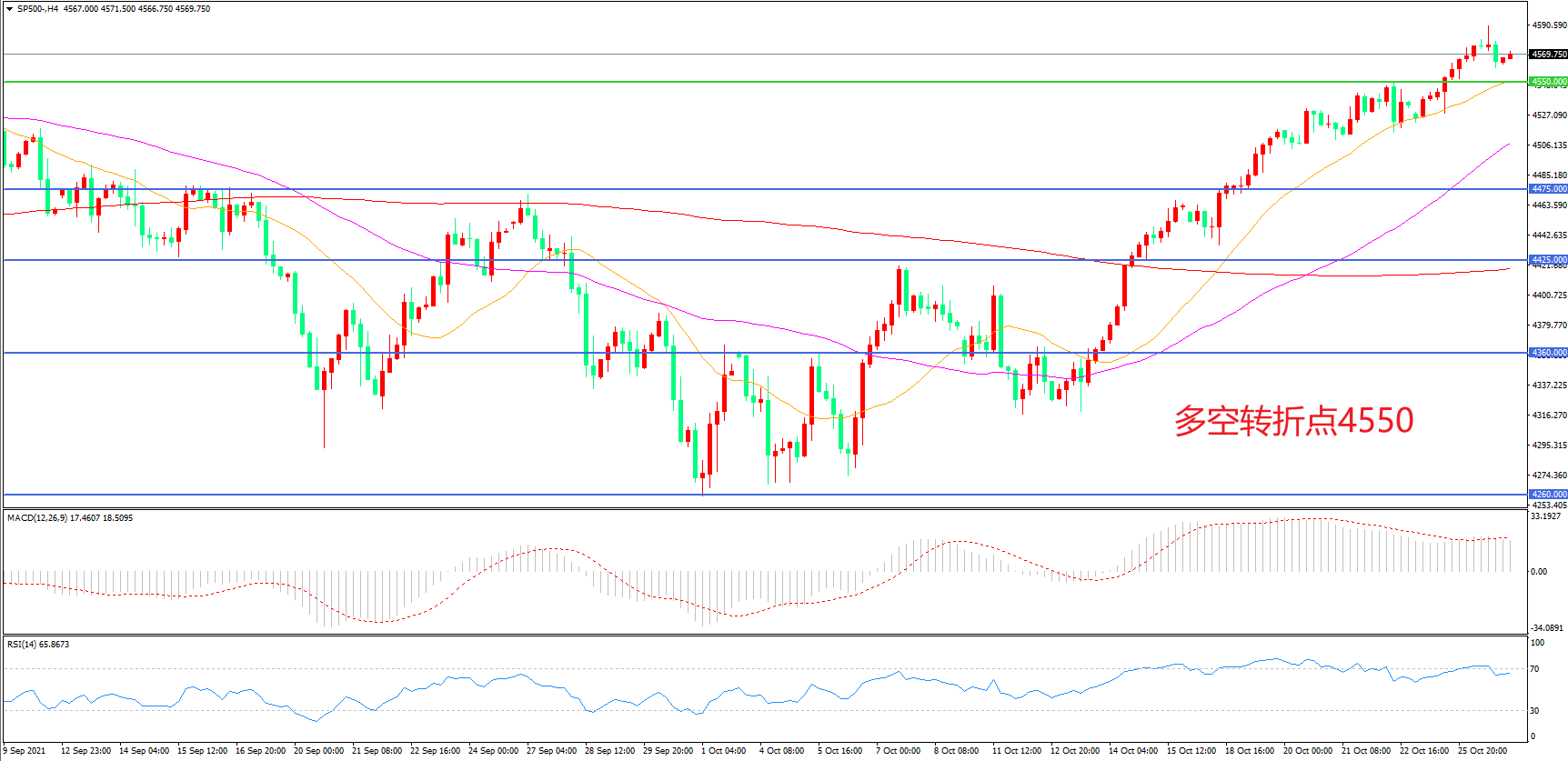 周二(10月26日),美国最新公布的消费者信心指数、新屋销售和里奇蒙德联储制造业指数均表现强于预期,强势的数据推高了市场中的风险情绪,标普500高歌猛进,收报4569.25点。近期美股受到靓丽企业财报的提振,三大股指均维持涨势,但市场依然面临三大央行的利率决议以及美国GDP等经济数据的考验,重磅数据来临前谨防市场“落袋为安”。