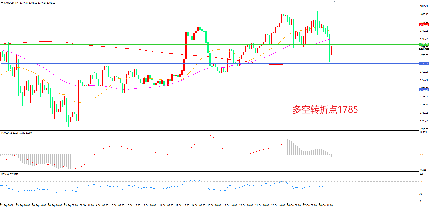 多空转折点:1800.00