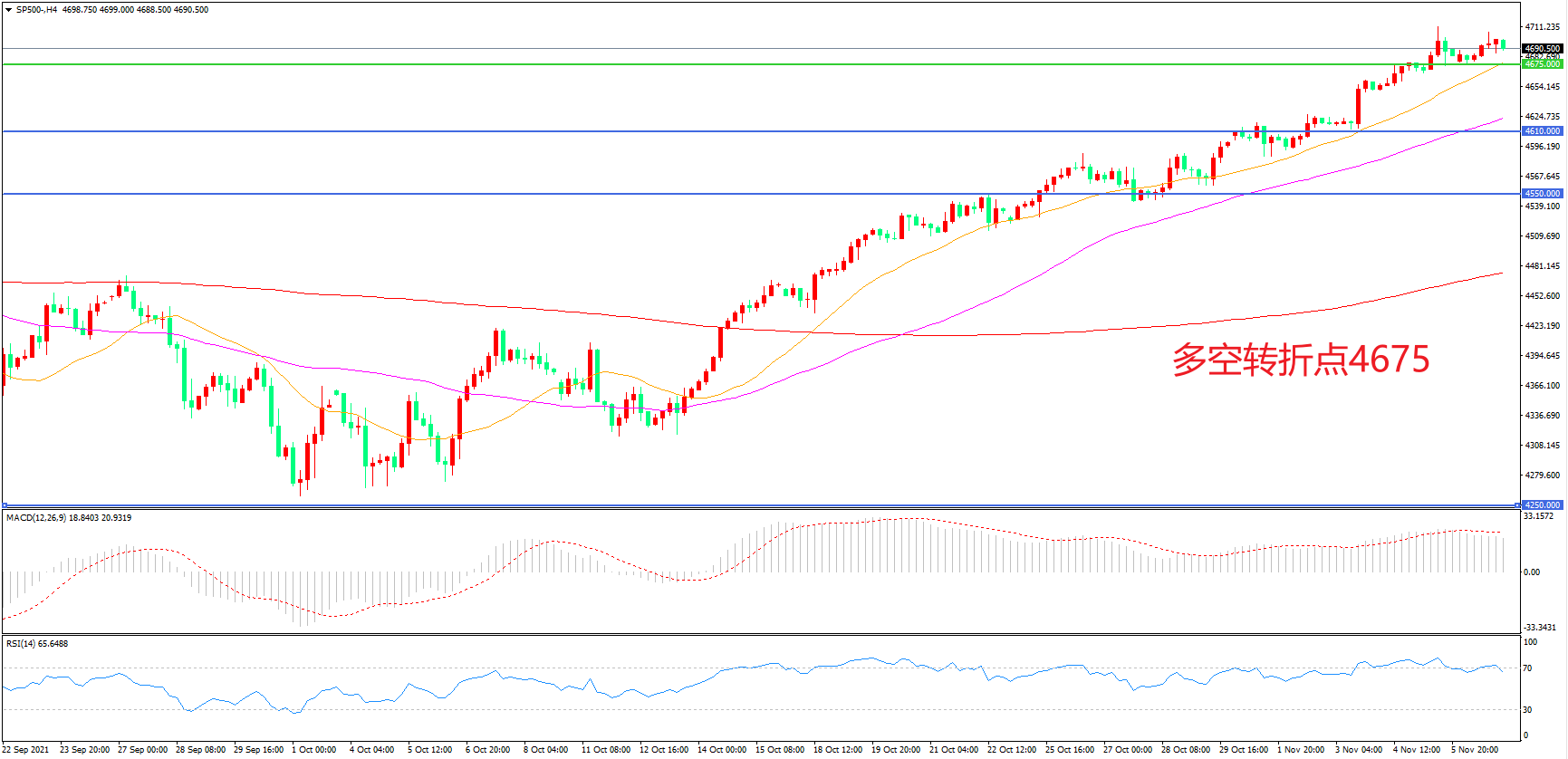 周一(11月8日),美国国会通过万亿美元总规模的两党基建方案,乐观情绪推动能源和材料板块走高,标普500大幅拉升,收报4691.50点。近期强劲的企业财报季表现提振了投资者信心,一系列经济数据回暖也为四季度复苏提供了基础,在高涨的投资者情绪下,美股有望再创新高。