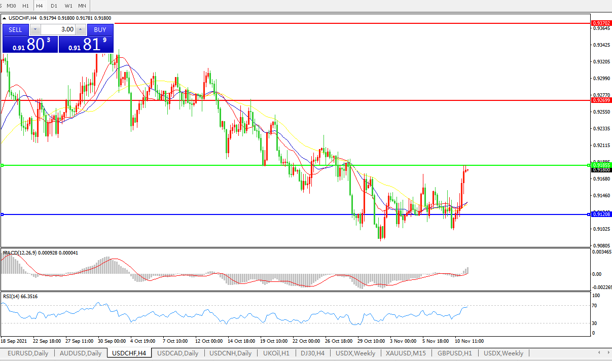 交易策略:0.9180下方看跌,目标0.9120、0.9040