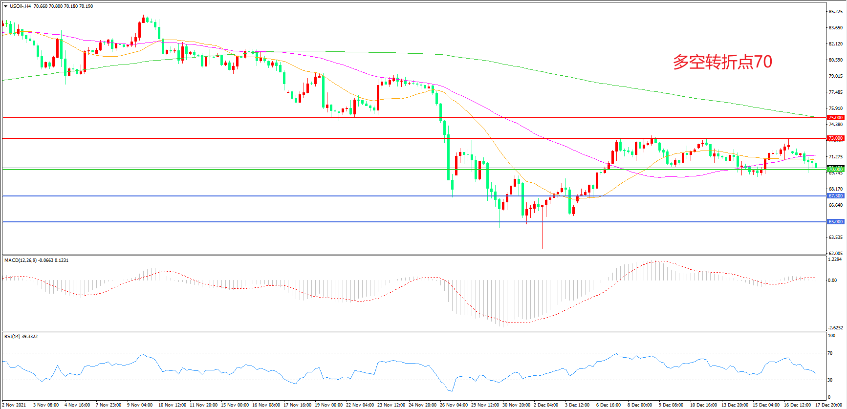 备选策略:在70.00之下看跌,目标67.50 65.00