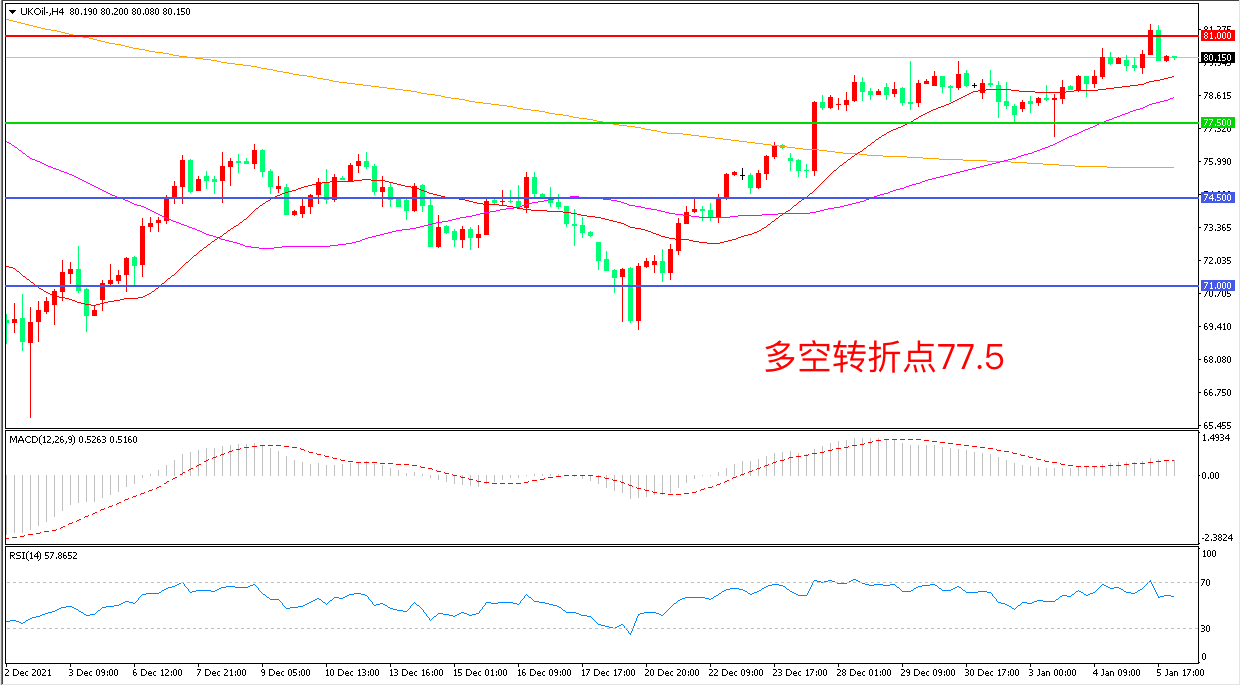 交易策略:在77.50之上看涨,目标81.00 84.00