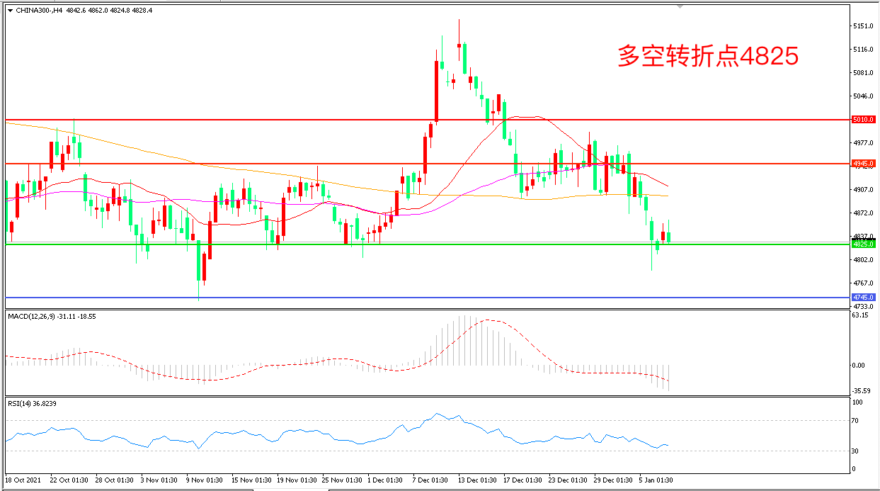 上周五(1月7日),三大指数集体高开,随后沪指冲高回落,沪深300惯性下冲,收报4828.4点,两市成交达到1.13万亿元,北向资金净卖出66.38亿元。2022年开年以来,指数连续走低,一方面是中国移动上市,对市场资金有分流影响,另一方面是市场资金的调仓换股所导致的风格转向,整体来看,筑底时期仍然比较漫长。