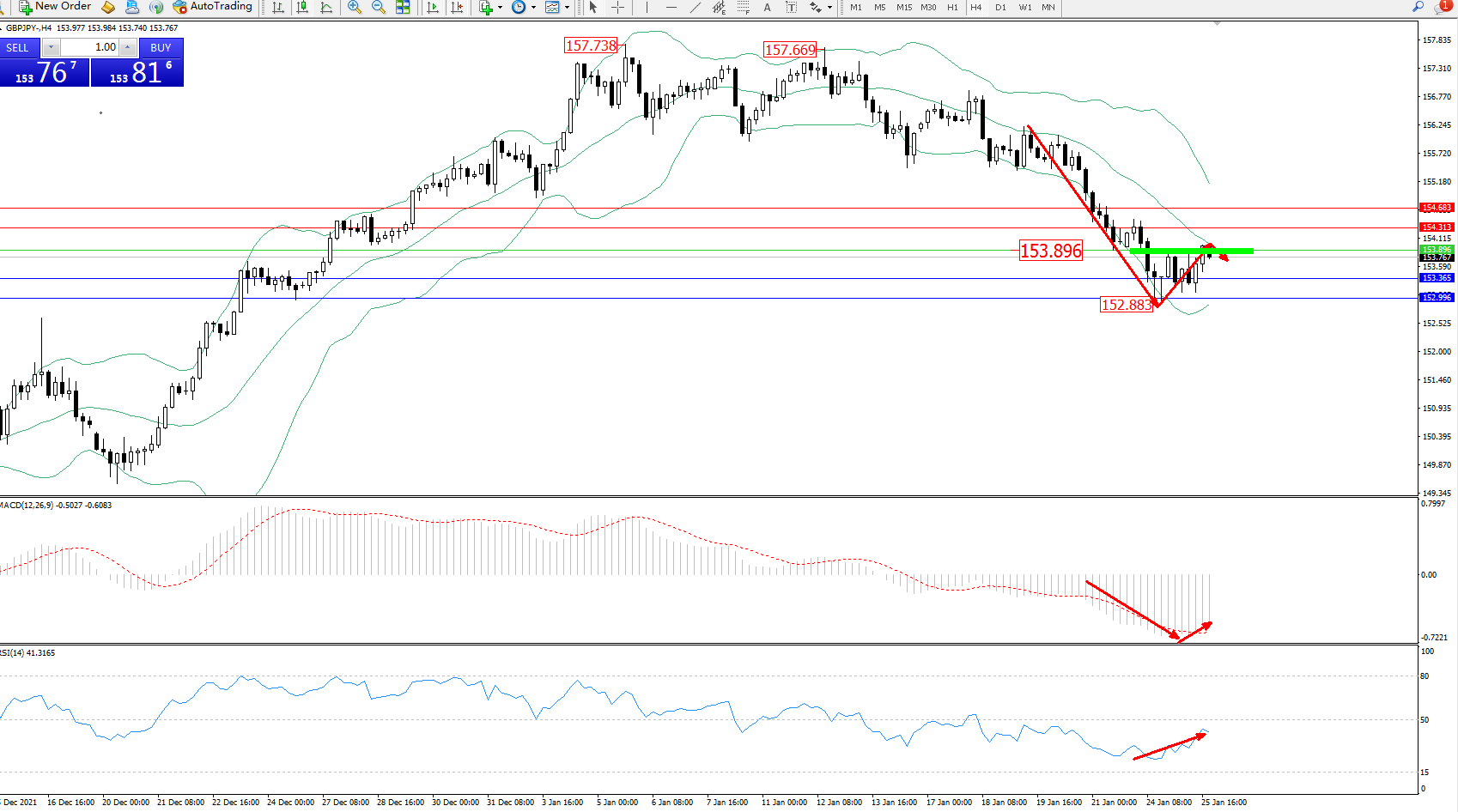 技术点评:空头动力延续布林带指标通道中下轨区间持续震荡下行,低位抵达152.883位置附近得到支撑反转上移,触及布林带指标中轨附近节点后遇阻,短期有继续窄幅整理迹象,布林带指标呈收口走势中,MACD指标处于空头区域弱势下行后开始徘徊向上移动,RSI指标处于空头区域弱势震荡向上拉升;