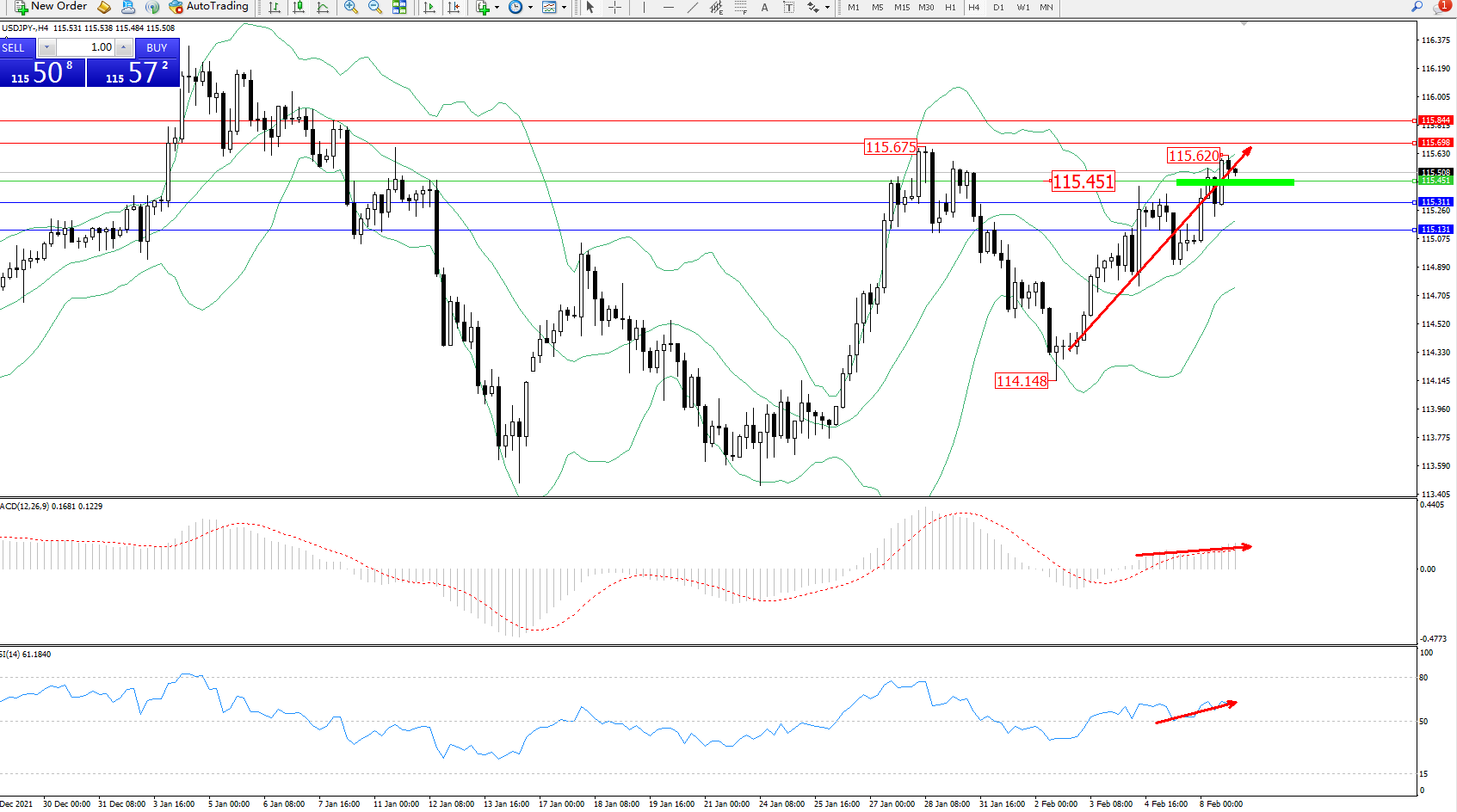 技术点评:多头动力延续布林带指标通道中上轨区间持续震荡上扬,高位抵达115.620附近节点遇阻整理,短期多头动力有继续攀升态势,布林带指标称上行趋势走势态势良好,短期未见有止步迹象,MACD指标处于多头区域维持整理缓慢向上移动中,RSI指标处于50均衡线上側窄幅整理徘徊;