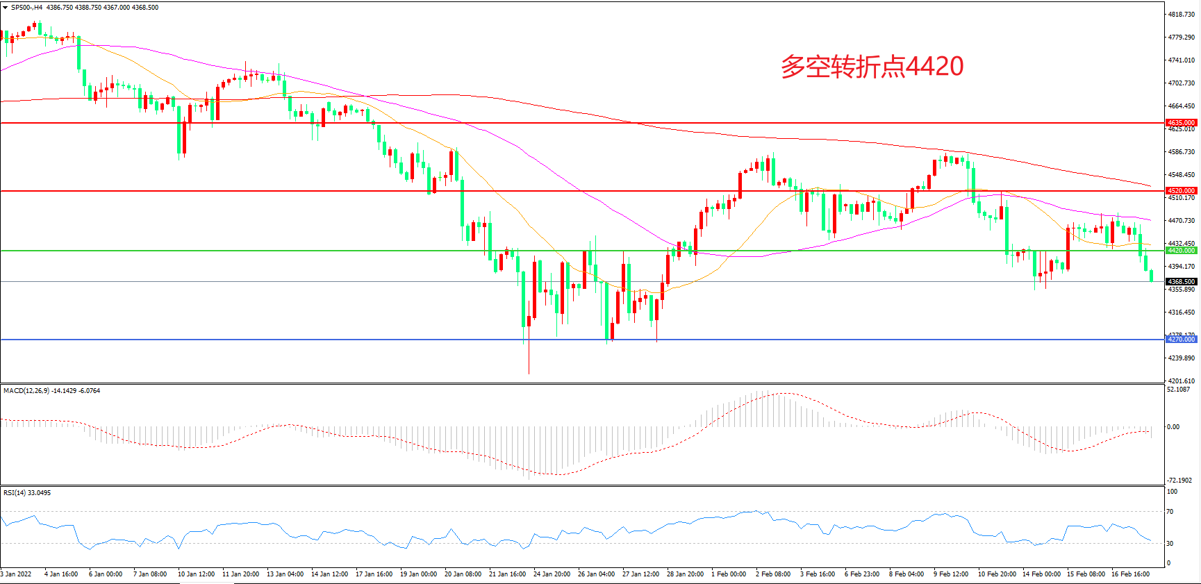 交易策略:在4420.00之下看跌,目标4270.00 4150.00