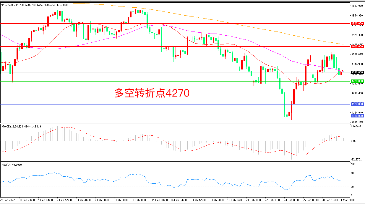 周二(3月1日),投资者担忧战争对全球经济的影响,欧美股市遭遇3月“开门黑”, 标普500震荡回落,收报4310.75点。各经济体正面临几十年来最高的通胀,这给各国央行增加了加息的压力。投资者正在判断乌克兰的战事可能会如何影响央行的加息前景,重点关注近期鲍威尔的国会讲话。