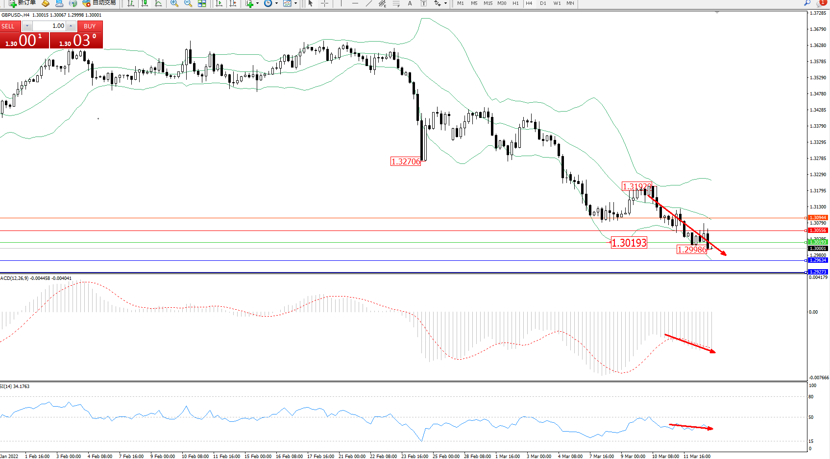 交易策略:1.30193下方看跌,目标1.29634、1.29273