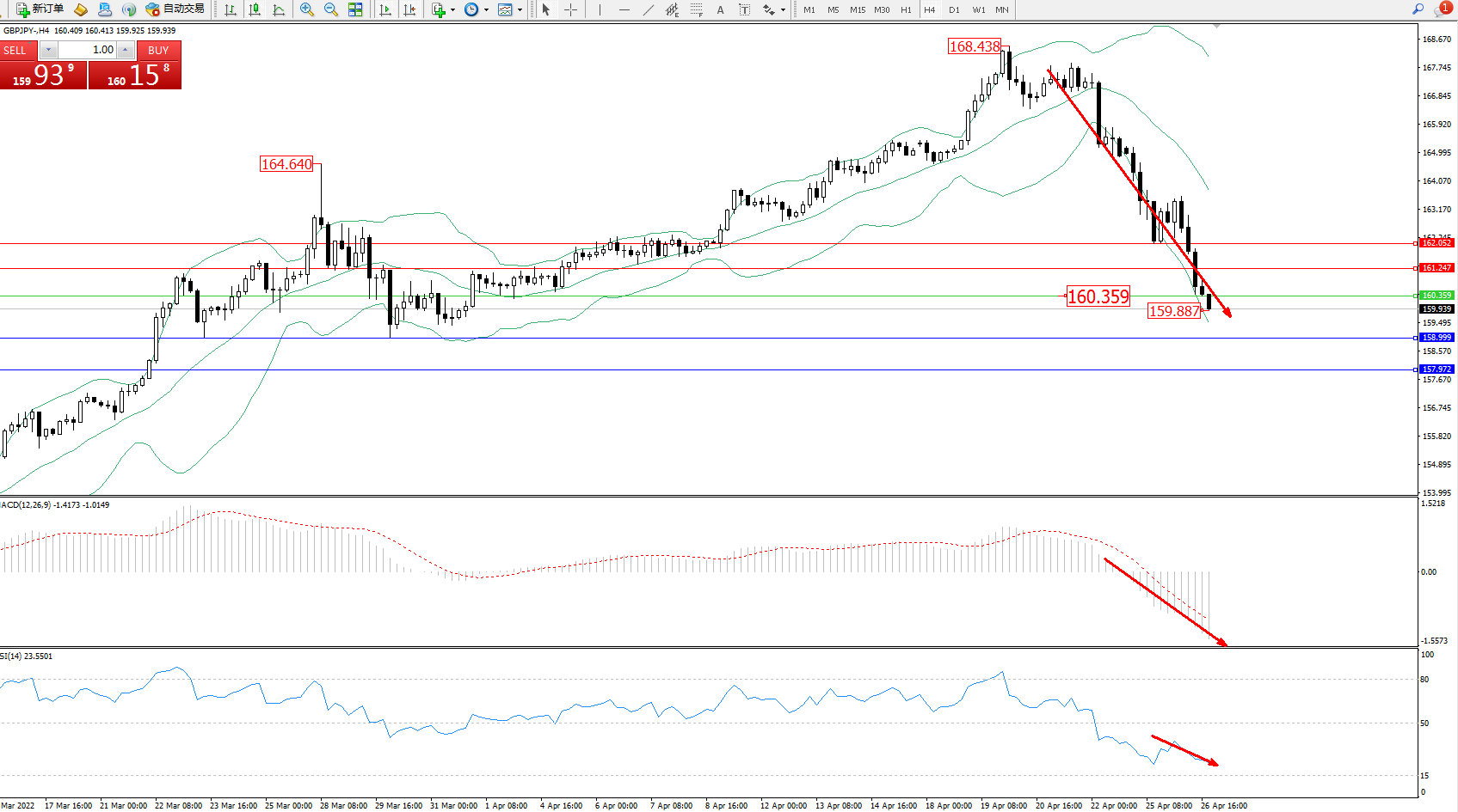 技术点评:空头动力延续布林带指标通道中下轨区间持续震荡下行,低位抵达159.887附近节点后整理,短期空头动力有进一步向下移动态势,布林带指标呈张口走势后开始缓慢收口向下移动,MACD指标处于空头区域维持震荡不断向下移动中,RSI指标处于空头区域维持震荡下行;