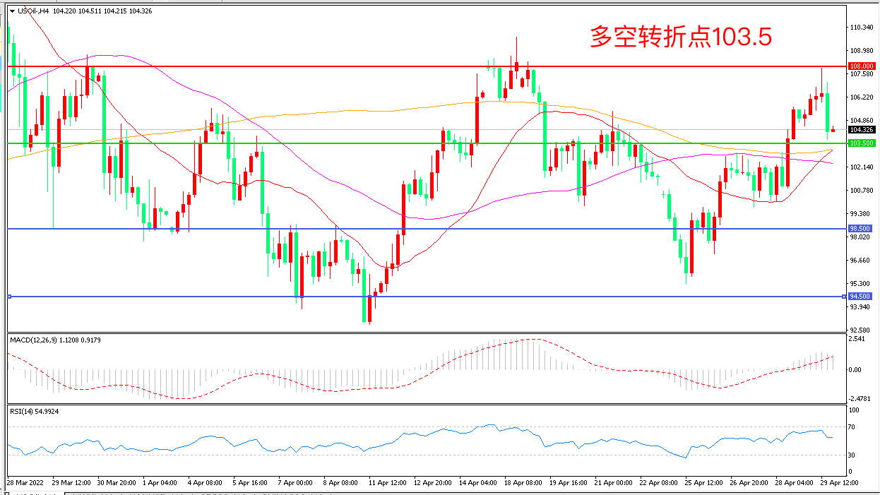 交易策略:在103.50之上看涨,目标103.50           108.00