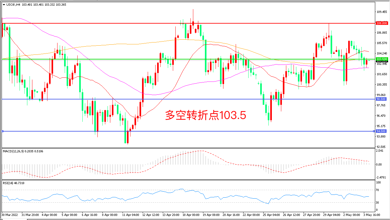 周二(5月3日),欧盟针对俄罗斯石油的制裁的进展依然扰动着市场,匈牙利、斯洛伐克等国的反对让禁运难以实现,美国WTI原油小幅回落,收报103.35美元/桶。根据研究显示,由于成员国受到产能限制,欧佩克上月未能提高产油量,就连沙特的增产幅度也没有达到其同意的额定规模,供需偏紧的格局下,油价仍将保持易涨难跌的格局。