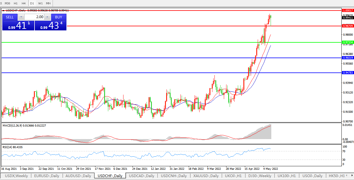 美通胀或已见顶,美元兑瑞郎继续冲高