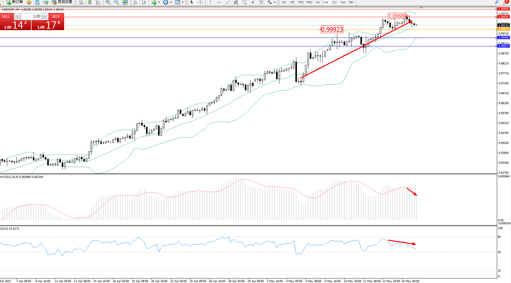 美元兑瑞郎维持1.00142附近震荡,通胀风险仍然强劲上行,尤其是在乌克兰战争可能进一步持续扰乱供应链的情况下。我需要看到通胀读数连续几个月下降,然后才能得出通胀已经见顶的结论。如果运气好的话,就业参与度将继续上升,供应链瓶颈将会缓解,有助于更好地平衡供应与需求,但我们不能依赖运气。交易员将进一步从几位联邦公开市场委员会(FOMC)官员的讲话中寻找线索,其中包括美联储主席鲍威尔,以寻找加息75个基点可能性的线索。这进而将决定美元短期走势并给瑞郎带来新的推力。