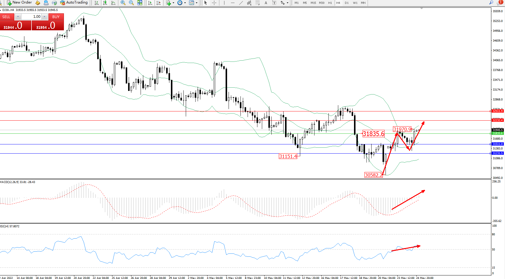 道琼斯指数5月24日(周二)收盘上涨49.83点,涨幅0.16%,报31930.07点;美股收盘,道指接近平收。美联储加息有令经济陷入衰退或滞胀的风险,因此建议卖出10年期通胀保值债券(TIPS),并持有更长期的TIPS。