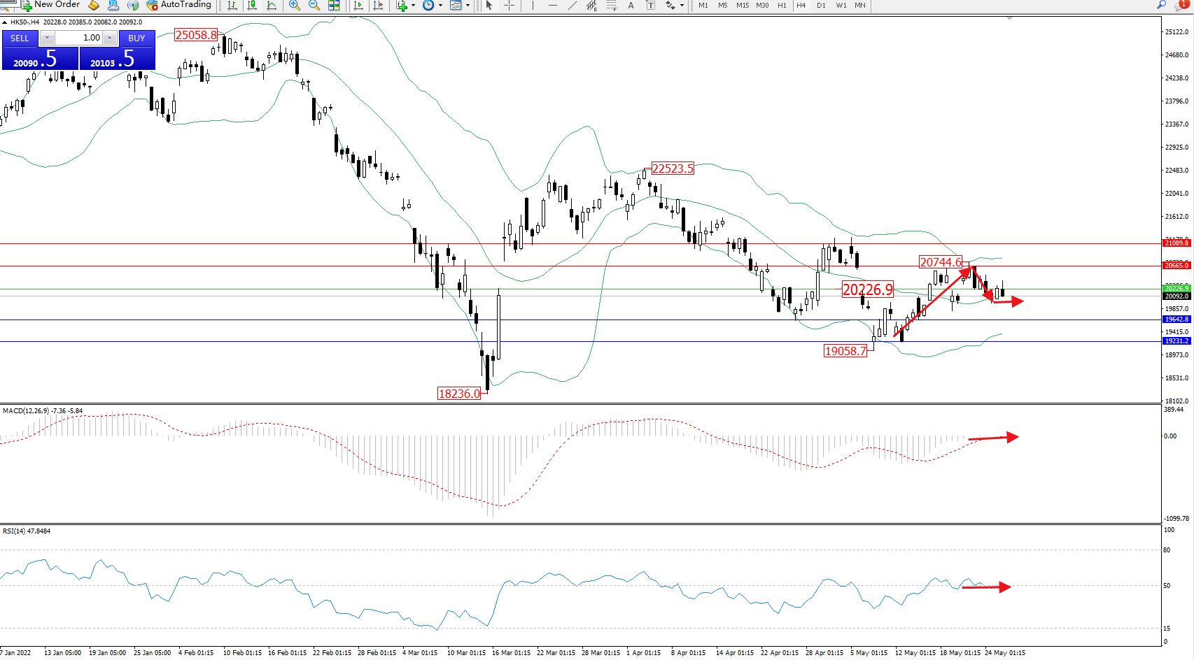 香港恒生指数5月25日(周三)收盘上涨59.17点,涨幅0.29%,报20171.27点;港股震荡上行,尾盘三大指数拉升均涨超1%,恒指、恒生科技指数分别收涨0.29%及0.28%,皆止步两连跌行情。大型科技股涨跌不一,快手绩后劲升超5%,网易涨3%,阿里巴巴、京东、腾讯跌超1%;今日南下资金净流入37.54亿港元,大市成交额1034亿港元。