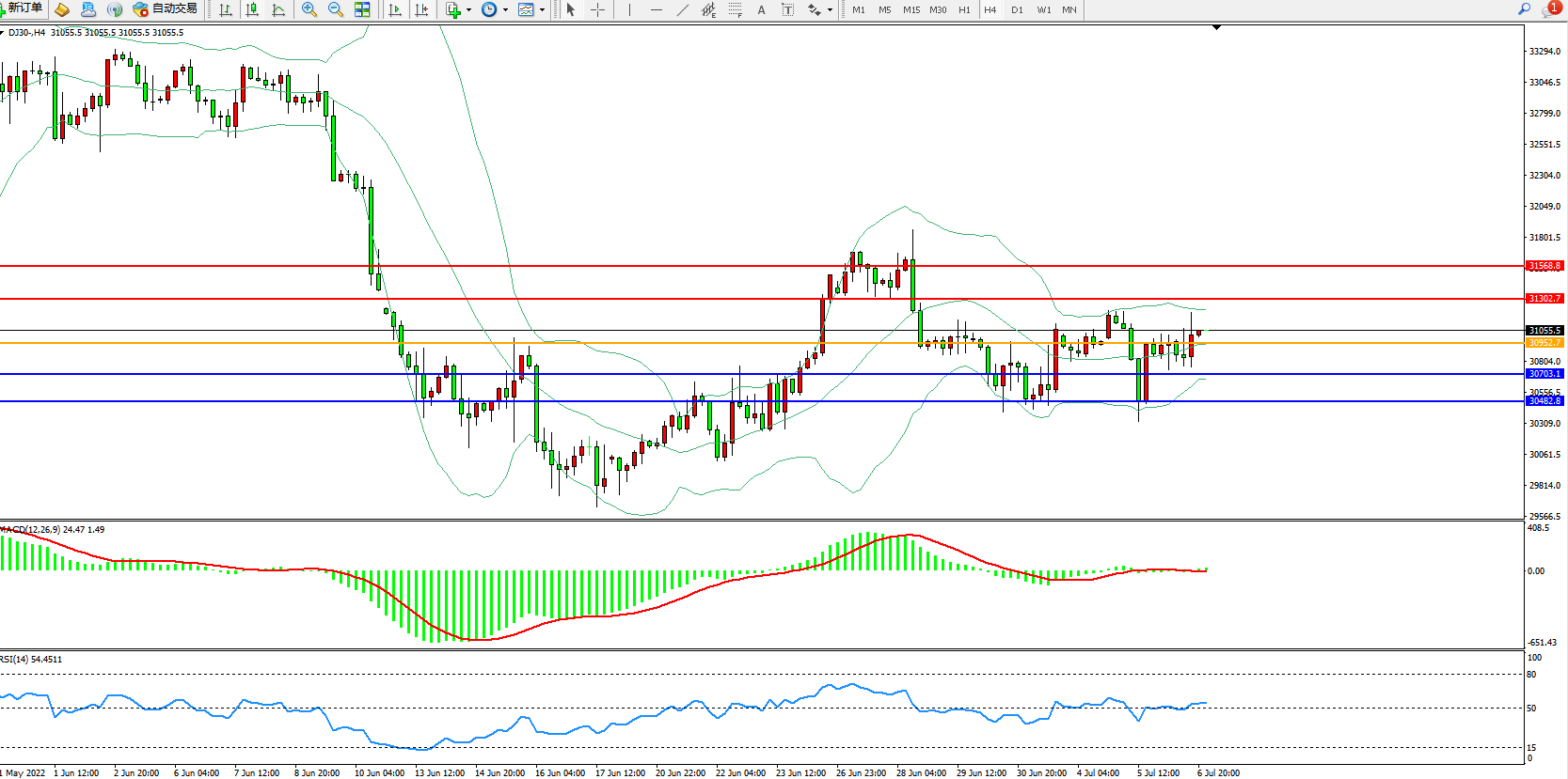 道琼斯指数7月6日(周三)收盘上涨69.40点,涨幅0.22%,报31037.22点;通货膨胀率将保持在高位,意味着超过美联储的容忍度。除非发生真正糟糕的事情,否则他们很可能会在7月再次加息75基点,然后9月份升息50基点。