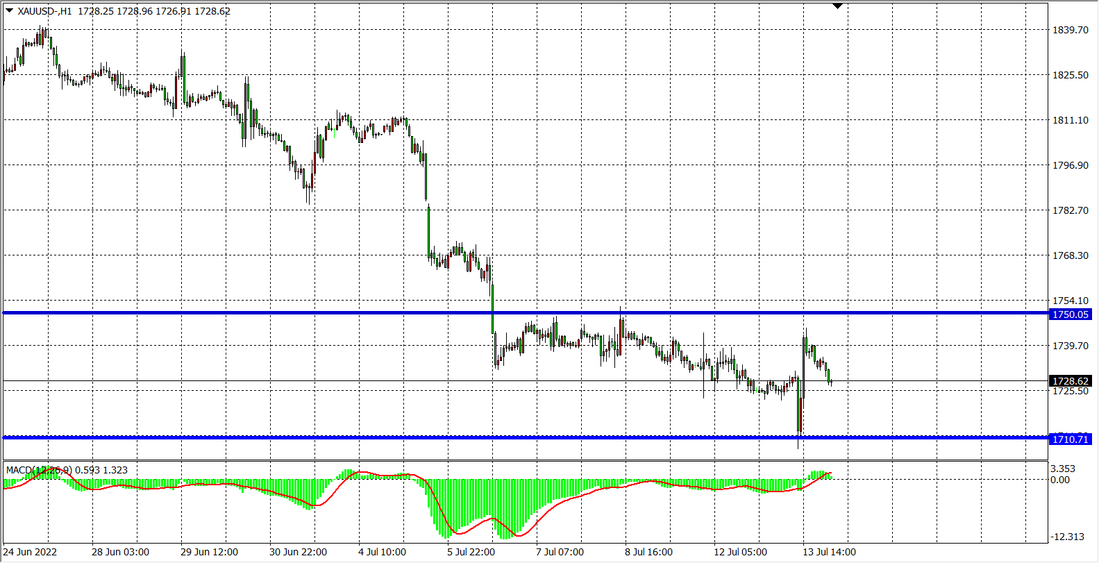 周三(7月13日)公布的美国6月CPI数据录得9.1%,大超8.80%的预期,为40年以来新高。美指因短期利好兑现,出现冲高回落,美指的回调和美联储激进加息可能带来的衰退前景给了黄金喘息的机会,金价在触及年内新低1706附近后一度大幅反弹到1740上方。但随着美联储控制通胀的态度越来越坚决,因此美指仍难以扭转其走强格局,金价反弹之路恐怕难以顺畅。